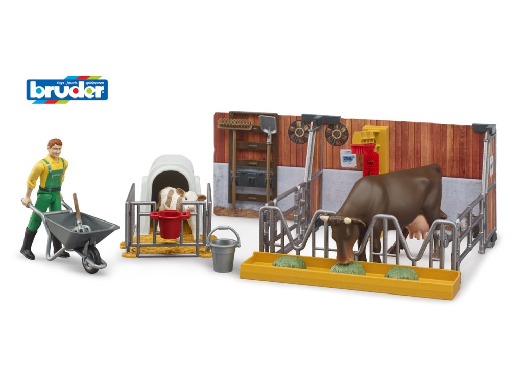 Bworld je svet hračiek BRUDER. Je tvorený pohyblivými figúrkami, zvieratami, doplnkami a tiež tematickými zostavami a je zaradený do známych kategórií BRUDER. Či už ako vodič, jazdec, milovník vodných športov, alebo v nemocničnom oddelení alebo v dielni pre motocykle, položky bworld poskytujú samy o sebe hodiny zábavy alebo dokonale dopĺňajú podrobné vozidlá. Všetci chlapci radi opravujú a majstrujú a snáď všetci milujú autá a modely Bruder. Preto je tu spojenie všetkých týchto obľúbených vecí. Bruder BWORLD 62611 krava a teliatko s farmárom obsahuje stajňu, kravu, box pre teliatko, teliatko a farmára s fúrikom a vidlami. Mierka: 1:16. Rozmer balenia: 8 x 17 x 30,5 cm. Výška figúrky: cca 10,7 cm. Materiál: ABS plast, polykarbonát. Vek: 4+