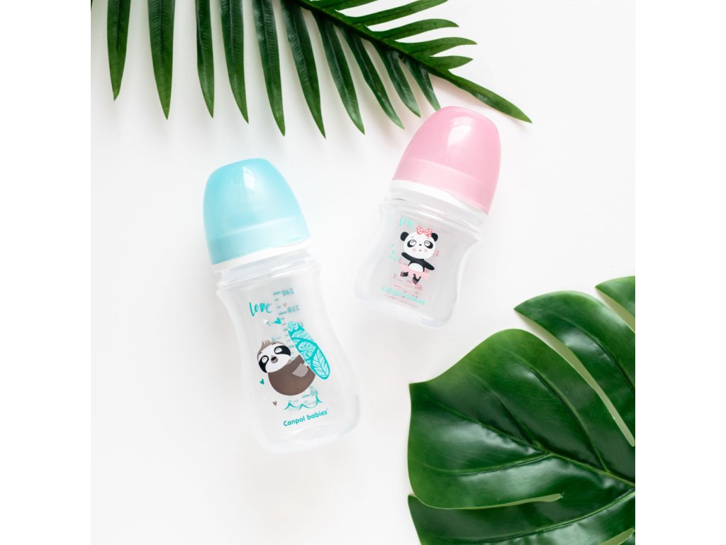 Canpol babies Antikoliková fľaša so širokým hrdlom EasyStart 300 ml PP EXOTIC ANIMALS modrá