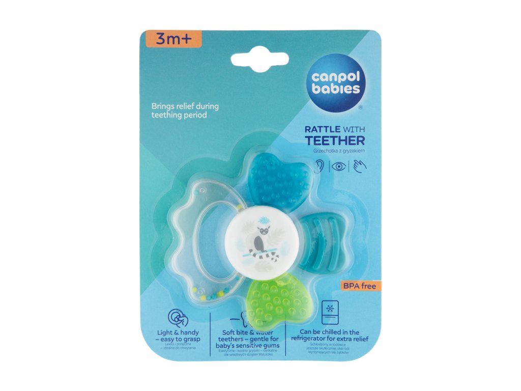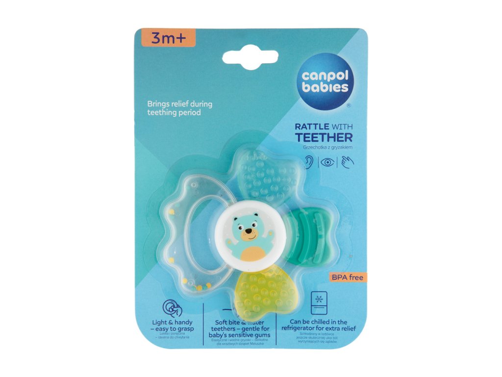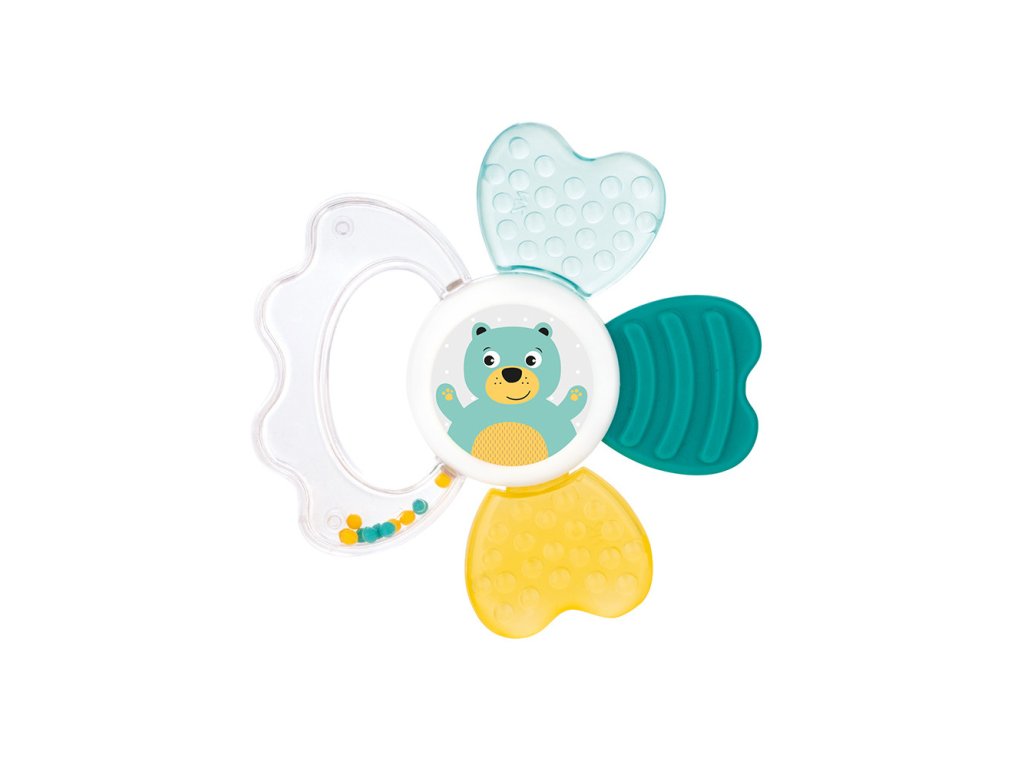 Hrkálka s hryzačkou je určená pre najmladšie deti. Kombinuje výhody pružnej hryzačky a hrkálky, pretože obsahuje veľké mäkké časti, ktoré poskytujú úľavu pri raste zúbkov. Atraktívne tvary a intenzívne farby priťahujú pozornosť dieťaťa. Mäkké časti sú prispôsobené na jemné detské ďasná. Hrkálky sú vyrobené z odolných a bezpečných materiálov (bez ostrých hrán). Pred podaním dieťaťu môžete ochladiť v chladničke. To pomôže upokojiť ďasná dieťaťa.