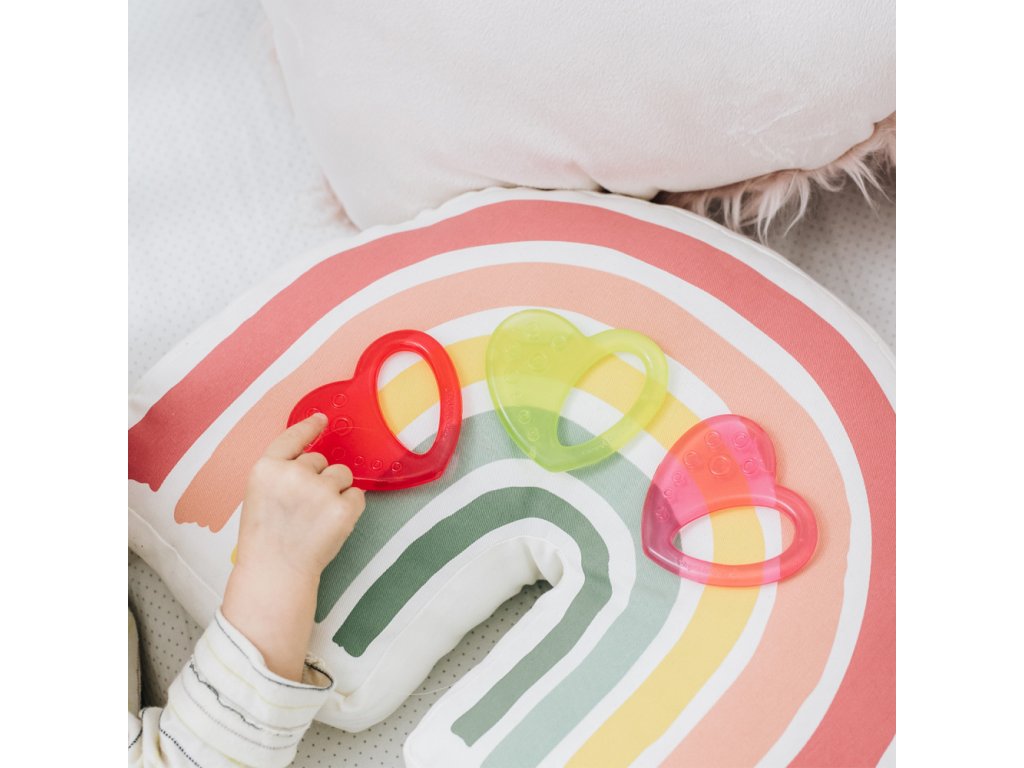 Chladiace hryzátko Srdiečko tíši bolesť v období rastu zúbkov, kedy dieťatko svrbí ďasná a má veľkú potrebu hryzenia. Vyrobené z mäkkého, pružného materiálu, ktorý sa prispôsobuje detským ústam. Stimuluje vizuálnu motorickú koordináciu dieťatka. Hryzátko je ľahké a praktické, čo uľahčuje jeho držanie v malých rukách. Navrhnuté pre deti od 3 m+. Pred podaním dieťatku schlaďte hryzátko v chladničke.
