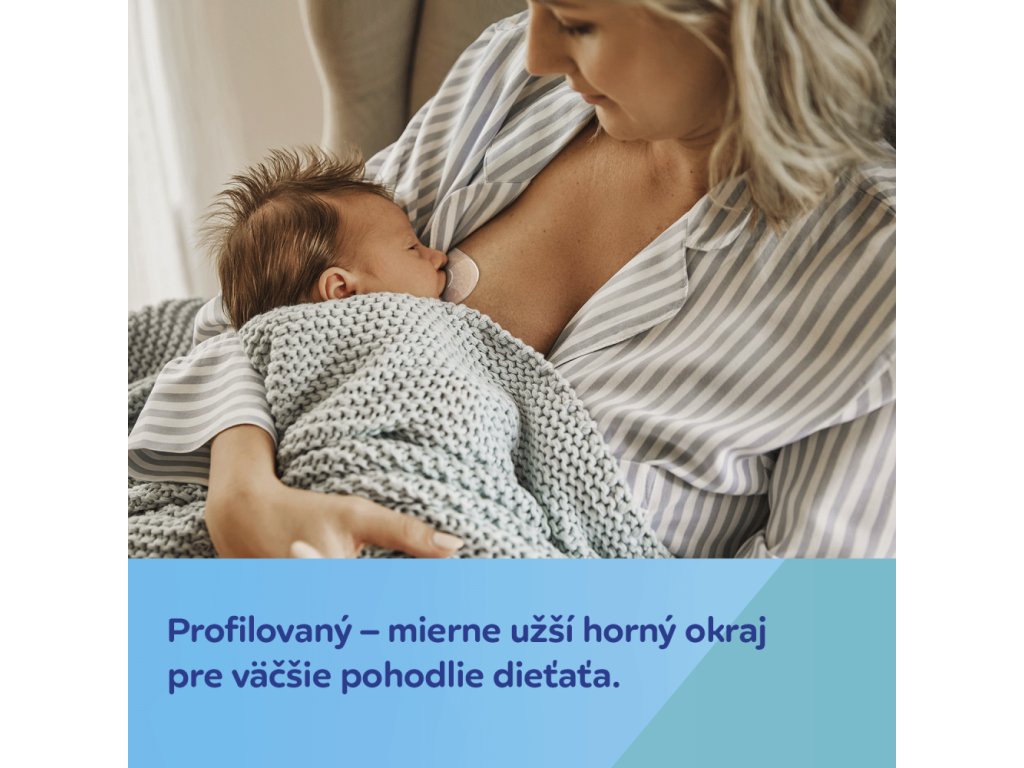 Chránič dôkladne pritlačte k prsníku. Skontrolujte, že profilovaná časť chrániča je umiestnená nahor alebo do miest, kde má dieťa pri kŕmení nos.