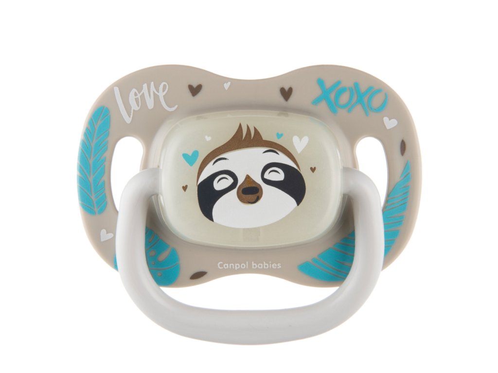 Canpol babies symetrický silikónový cumlík 0-6m EXOTIC ANIMALS (leňoch) je pevný a odolný voči deformácii. Bez BPA. Tento cumlík je bezpečný a ľahko sa udržuje v čistote – je možné ho dezinfikovať vo vriacej vode a v sterilizátore. Symetrický cumlík sa dobre prispôsobí ústam dieťaťa bez ohľadu na spôsob jeho umiestnenia a jeho tvar je považovaný za najfyziologickejší, podporuje zachovanie prirazeného rytmu satia a správny vývoj reči. Cumlík odporúčaný pre deti vo veku 0-6 mesiacov. Canpol babies symetrický silikónový cumlík 0-6m EXOTIC ANIMALS (leňoch) je dostupný v niekoľkých jedinečných designoch a rôznych veľkostiach – rastie s dieťaťom.