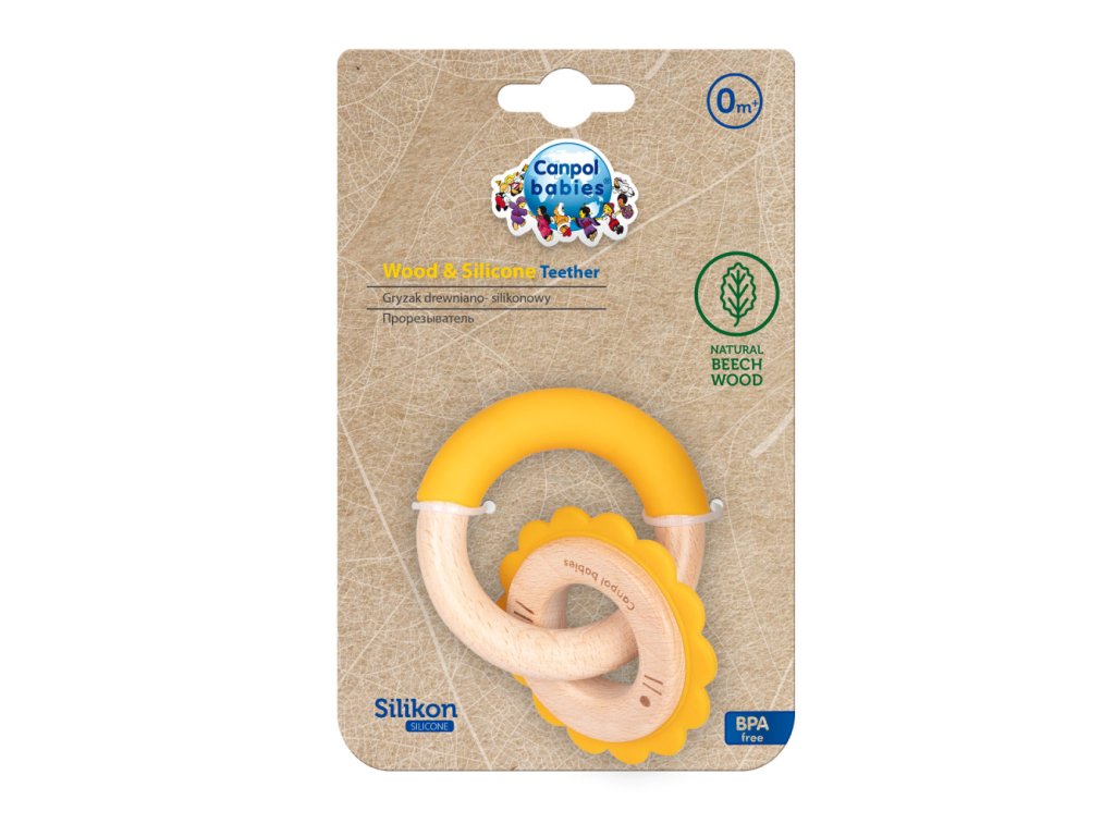 Vyrobené z materiálov s rôznou štruktúrou a úrovňou tvrdosti - silikónové a drevené prvky - skvelé riešenie pre upokojenie boľavých ďasien dieťatka a neustálu potrebu hryzenia.