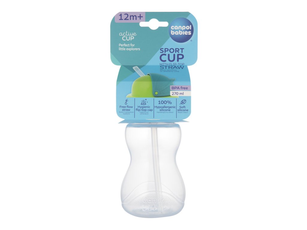 Praktická športová fľaša s objemom 270 ml bola navrhnutá tak, aby deti boli stále hydratované pri hre, učení a dobrodružstvách na čerstvom vzduchu alebo v škôlke. Skvelá voľba pre batoľatá, ktoré už vedia samostatne piť a deti chodiace do škôlky. Mäkká siliknová slamka s voľným prietokom je šetrná k citlivým ďasnám dieťaťa. Športová fľaša je vyrobená z nerozbitného a bezpečného plastu. Je ľahká a odolná proti poškodeniu. Tvar fľaše uľahčuje držanie v detských rukách a veľký otvor uľahčuje plnenie a umývanie. Určené na studené nápoje alebo nápoje izbovej teploty. Možno ho umývať v umývačke riadu a ohrievať v mikrovlnnej rúre. Fľaša sa otvára a zatvára rýchlo a ľahko. Uzavretá športová fľaša je tesná a netečie. Špeciálny úchyt umožňuje pripevnenie na kočík alebo pás. Športová fľaša Canpol babies so silikónovou slamkou skvele podporí dieťa na pitie vody a rozvoj správnych návykov.