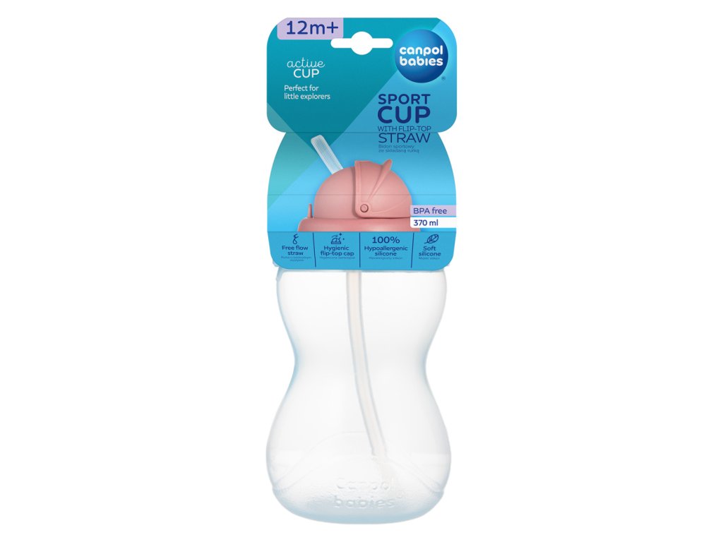 Praktická športová fľaša s objemom 370 ml bola navrhnutá tak, aby deti boli stále hydratované pri hre, učení a dobrodružstvách na čerstvom vzduchu alebo v škôlke. Skvelá voľba pre batoľatá, ktoré už vedia samostatne piť a deti chodiace do škôlky. Mäkká siliknová slamka s voľným prietokom je šetrná k citlivým ďasnám dieťaťa. Športová fľaša je vyrobená z nerozbitného a bezpečného plastu. Je ľahká a odolná proti poškodeniu. Tvar fľaše uľahčuje držanie v detských rukách a veľký otvor uľahčuje plnenie a umývanie. Určené pre studené nápoje alebo nápoje izbovej teploty. Možno ho umývať v umývačke riadu a ohrievať v mikrovlnnej rúre. Fľaša sa otvára a zatvára rýchlo a ľahko. Uzavretá športová fľaša je tesná a netečie. Špeciálny úchyt umožňuje pripevnenie na kočík alebo pás. Športová fľaša Canpol babies so silikónovou slamkou skvele podporí dieťa na pitie vody a rozvoj správnych návykov.