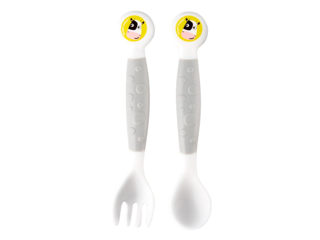 Flexibilný príbor v roztomilom dizajne kravičky (vidlička a lyžička) je vyrobený z plastického materiálu. Po vytvarovaní drží daný tvar, ktorý uľahčuje výučbu deťom, ktoré sa učia samy jesť. Vhodný pre deti staršie ako 12 mesiacov. Príbor je vyrobený z bezpečných materiálov, ktoré sú určené na kontakt s potravinami. Upozornenie! Z bezpečnostných dôvodov neohýbajte príbor pod väčším uhlom ako 90°. Príbor neobsahuje BPA.