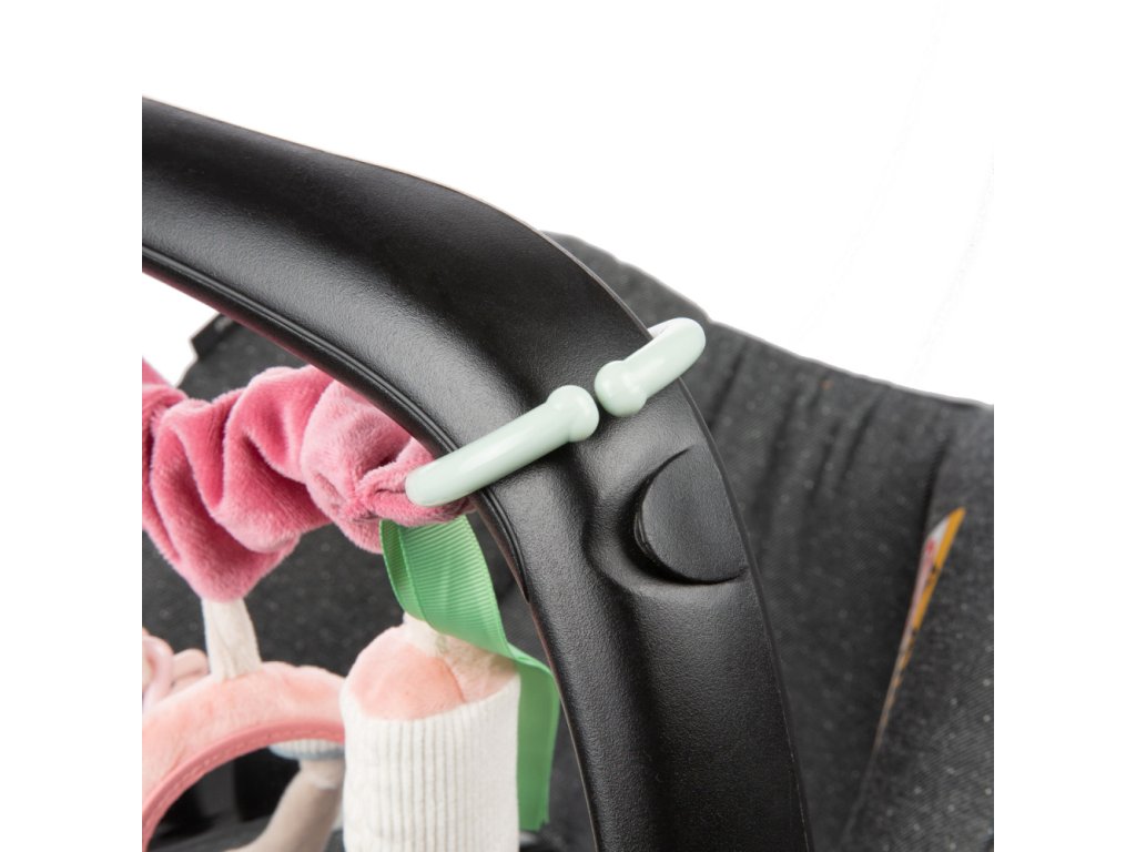 Farebná hračka PASTEL FRIENDS je vhodná do kočíka, detskej autosedačky a postieľky. Dva spôsoby montáže uľahčia upevnenie hračky. Je z materiálu príjemného na dotyk s rôznymi textúrami. Stimuluje rozvoj zrakovej, sluchovej a motorickej koordinácie dieťaťa. Hračka ukrýva mnoho prekvapení, ktoré dieťa nadlho zaujmú. Obsahuje zvonček, hrkálku, šuštivé prvky, bezpečné zrkadielko a pružné hryzačky. Hračka je určená pre deti hneď od narodenia.