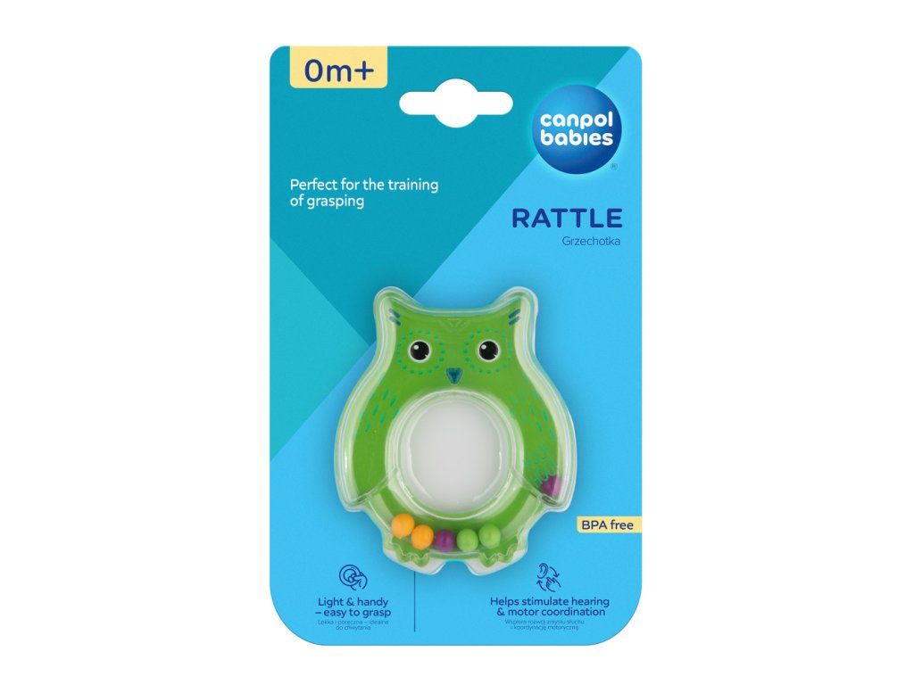 Hrkálka Sova je ideálnou voľbou pre prvú hračku dieťaťa, pretože je ľahká a praktická. Dieťa ho dokáže jednoduché uchopiť a držať v drobných rukách. Má jemne zaoblené tvary. Priehľadné časti hračky obsahujú malé farebné prvky, ktoré sa počas hry pohybujú a vytvárajú príjemný hrkavý zvuk. Povzbudzuje dieťa k cvičeniu a hraniu a stimuluje jeho psychomotorický vývoj. Vhodné pre deti hneď od narodenia.