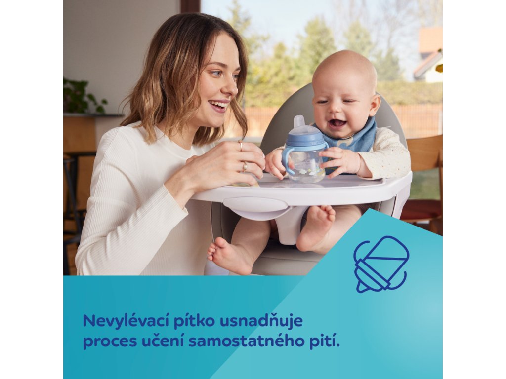 Perfektné riešenie pre učenie sa samostatne piť od 6 mesiacov veku dieťaťa vďaka netečúcemu náustku, ktoré zabraňuje rozliatiu. Náustok je netečúci aj keď dieťa hrnček nakloní alebo upustí. Hrnček je veľmi intuitívny, systém je veľmi podobný ako pitie z dojčenskej fľaše, čo umožňuje rýchly a ľahký prechod z fľaše na hrnček.