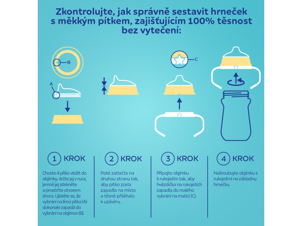 Netečúci náustok – uľahčuje učenie sa piť samostatne.