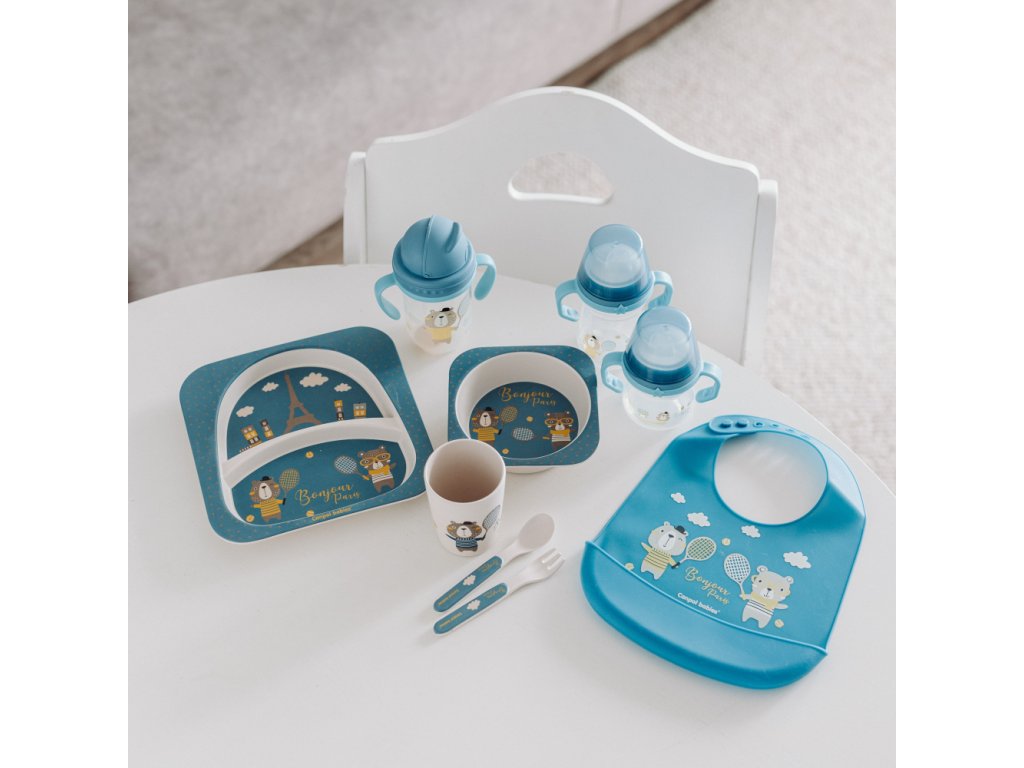 Canpol babies netečúci hrnček FirstCup BONJOUR PARIS 150ml modrý má tesný kryt, ktorý chráni náustok pred znečistením. Canpol netečúci hrnček so silikónovým náustkom FirstCup BONJOUR PARIS 150ml modrý je ideálny pre najmenšie deti od 6 mesiacov. K dispozícii je vymeniteľný silikónový náustok.
