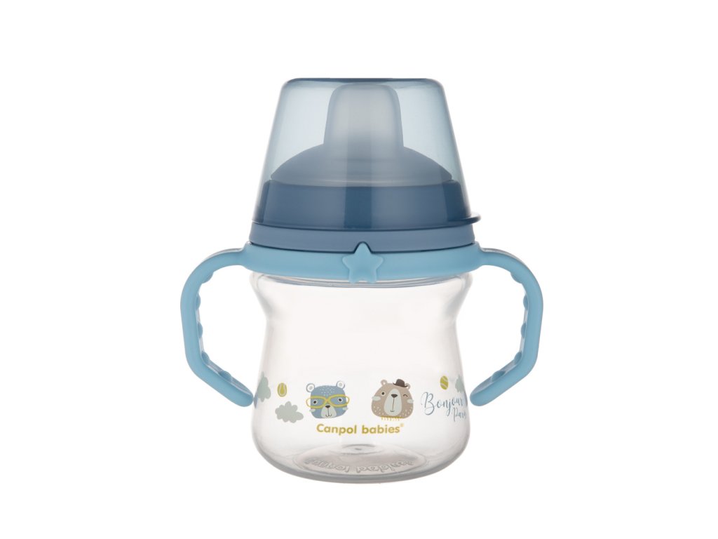 Canpol babies Hrnček so silikónovým náustkom FirstCup BONJOUR PARIS 150ml modrý