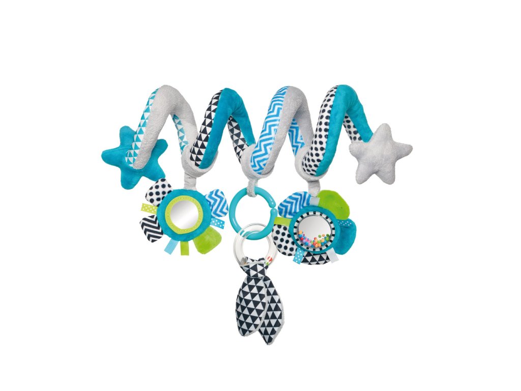 Farebná špirálová hračka ZIGZAG je vhodná do postieľky aj do kočíka. Je z materiálu príjemného na dotyk s rôznymi textúrami. Dokonale stimuluje rozvoj zrakovo-sluchovej a motorickej koordinácie dieťaťa. Skrýva mnoho prekvapení, ktoré dieťa nadlho zaujmú. Má hrkálku a bezpečné zrkadielko. Vhodné pre deti hneď od narodenia.