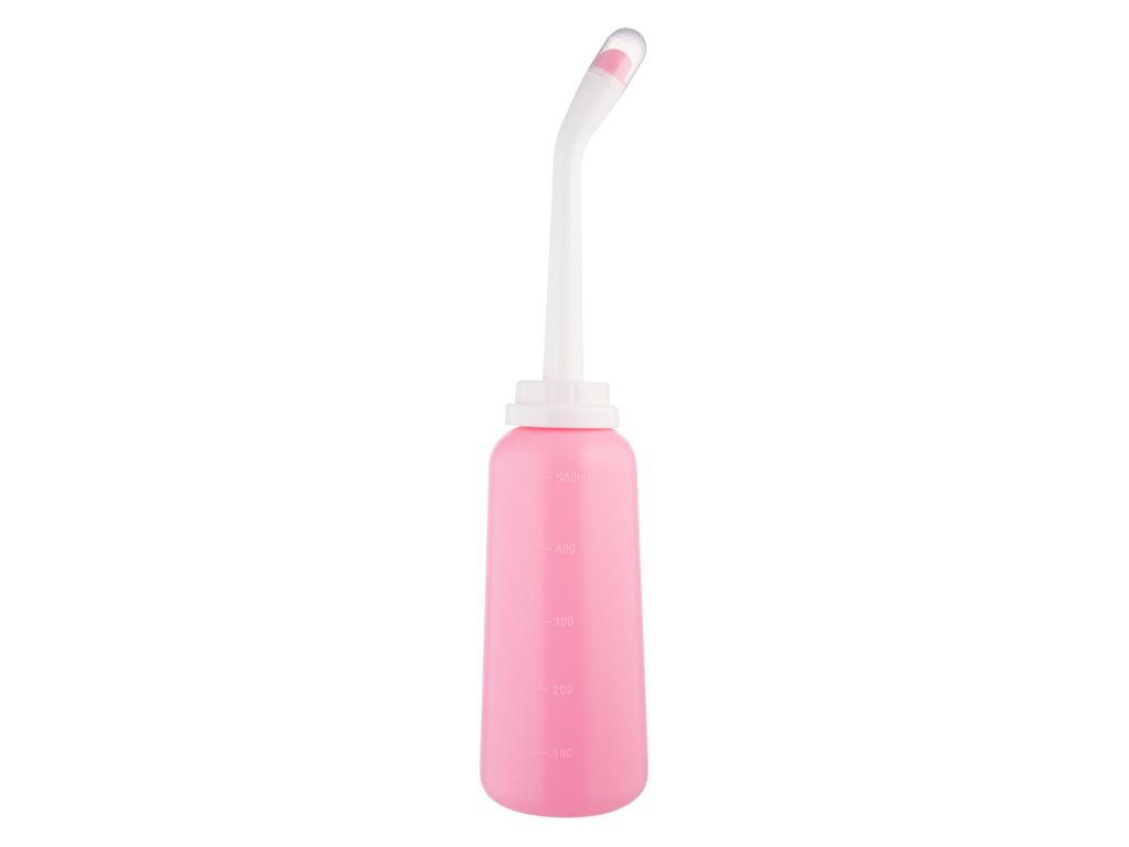 1. Na toalete nalejte do fľaše teplú vodu a pevne zaskrutkujte uzáver. Na pohodlnú aplikáciu má fľaša dve koncovky s rôznymi uhlami trysiek.