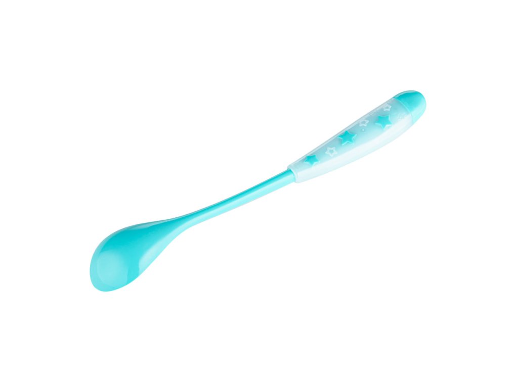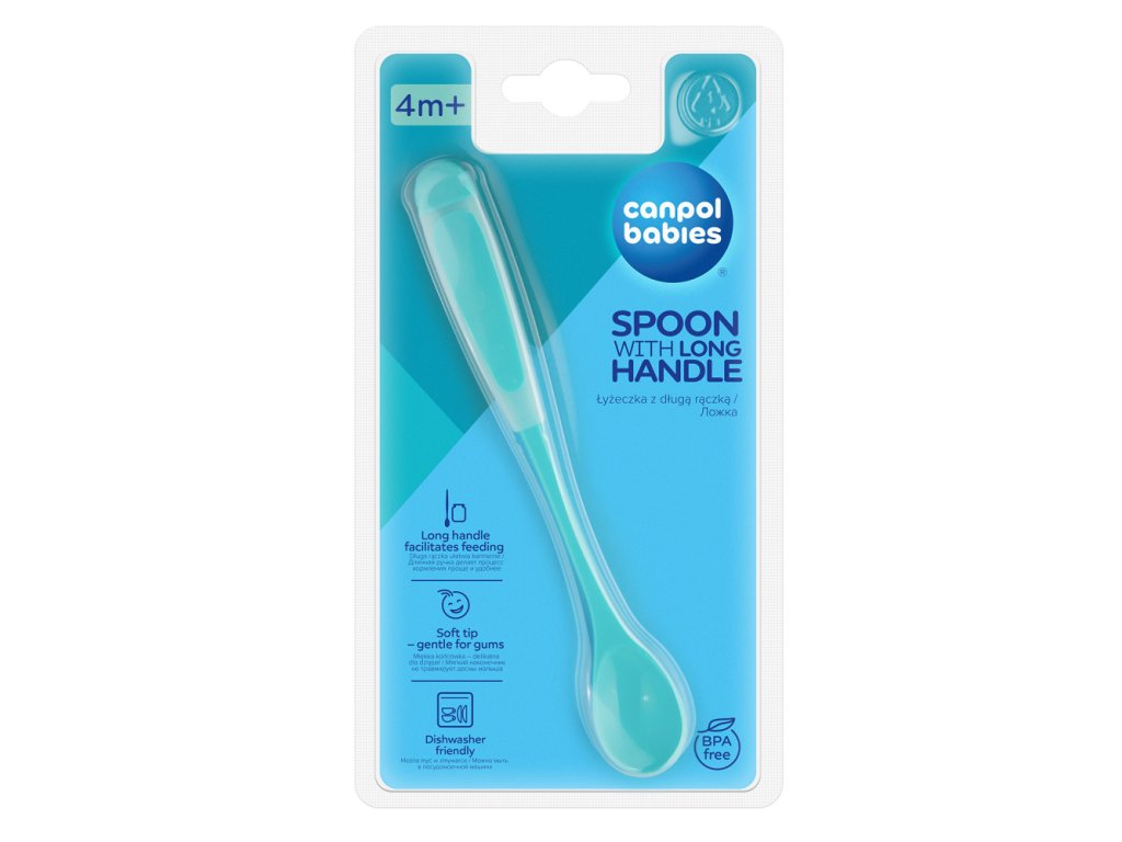 Praktická lyžica s dlhou rúčkou uľahčuje kŕmenie dieťaťa a vyberanie jedla z pohára. Má mäkkú špičku. Zaoblené okraje nedráždia jemné ďasná dieťaťa. Lyžica bude užitočná pri rozširovaní jedálnička. Z bezpečných materiálov bez obsahu BPA. Môže sa umývať v umývačke. Pre deti od 4 mesiacov.