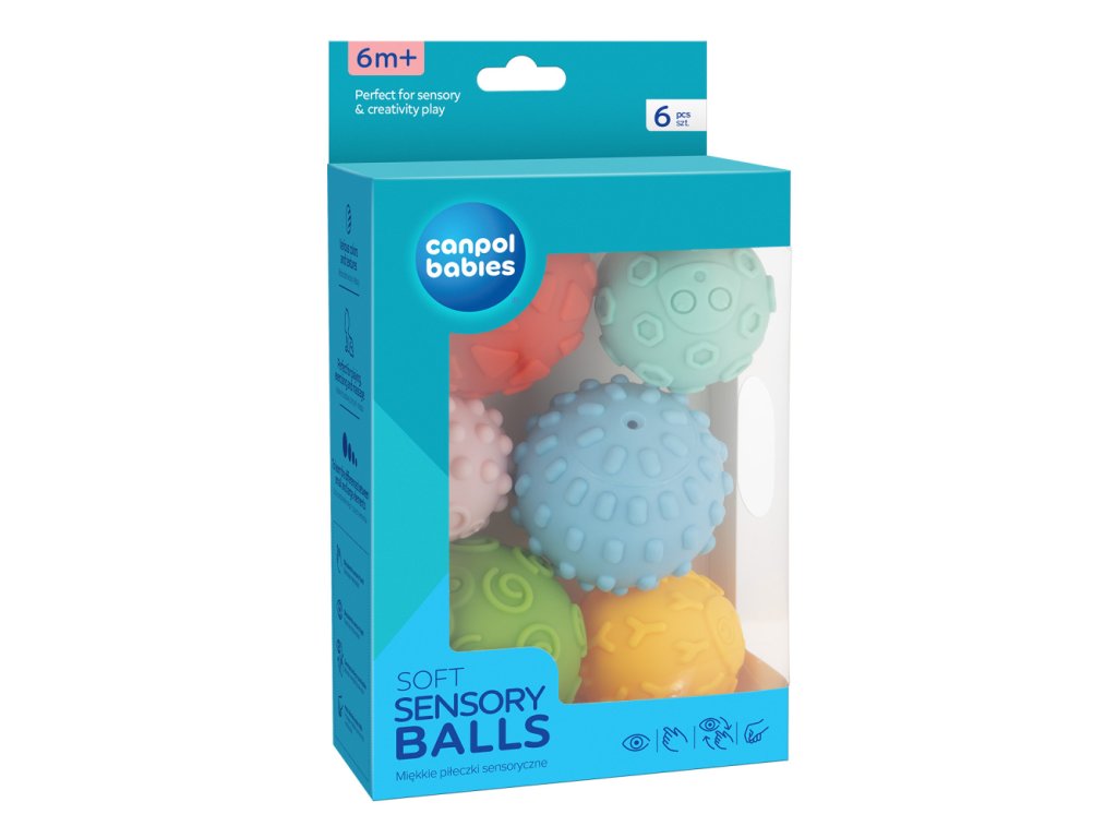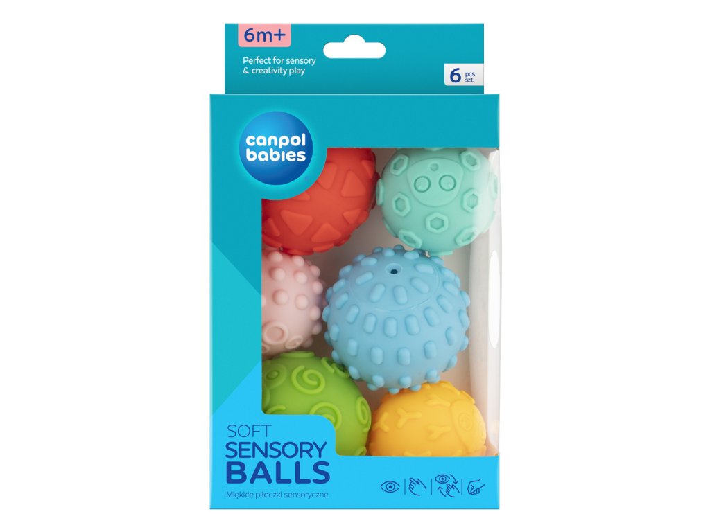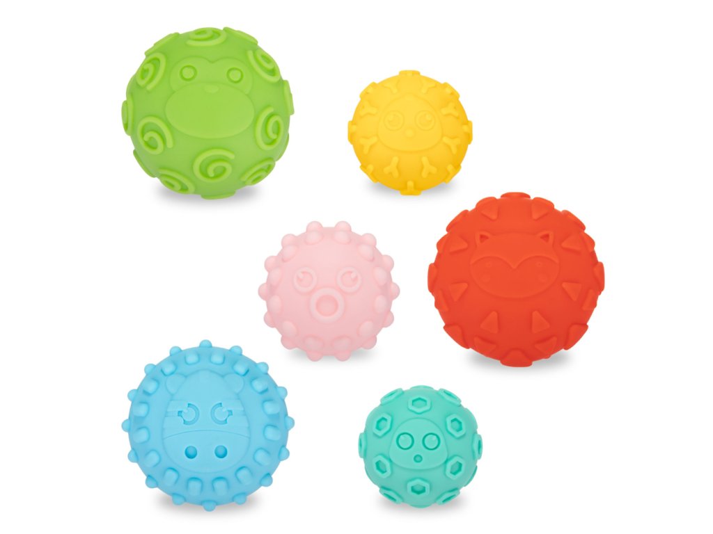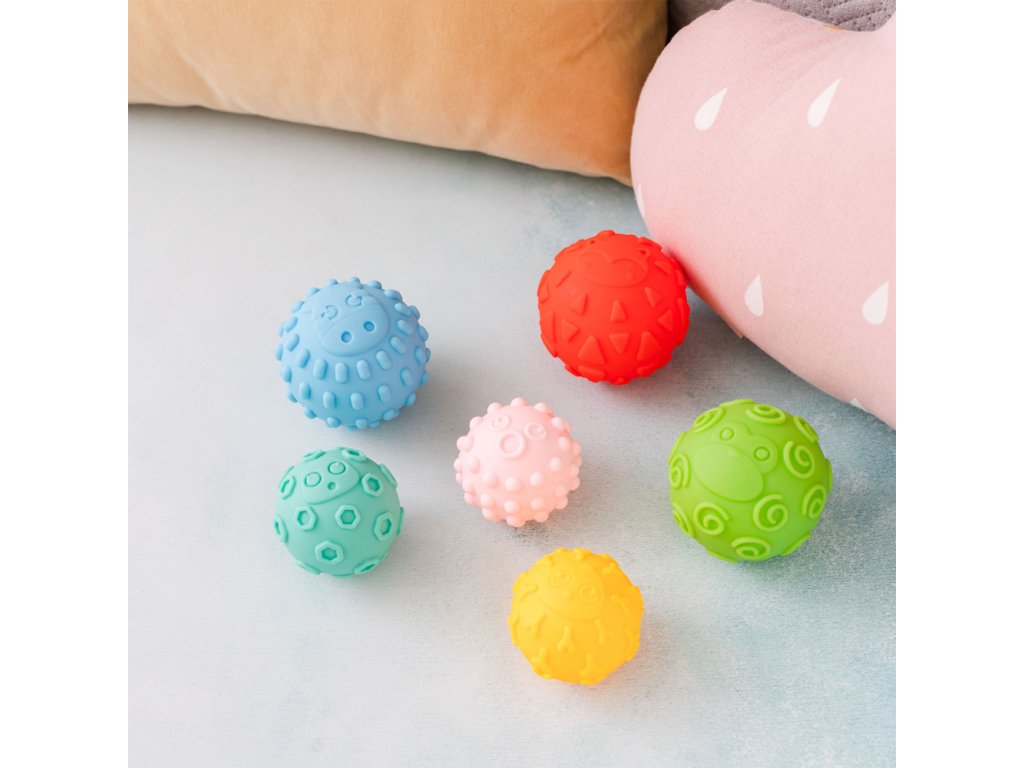 Jemné senzorické loptičky sú určené predovšetkým na zábavu a objavovanie v prvých mesiacoch života bábätiek. Tieto loptičky pomáhajú rodičom podporiť vývoj ich bábätiek vo veľmi rannej fáze. Rozmanité tvary a materiály poskytujú rôznorodé senzorické vnemy. Umožňujú trénovať úchop a stimulovať dotyk. Svieže, veselé farby povzbudia malé stvorenia k aktivite a hre. Loptičky môžu byť taktiež použité pre jemnú masáž. Set obsahuje 6 loptičiek rôznych farieb, ktoré sú zabalené v atraktívnej darčekovej krabici a neobsahujú BPA.