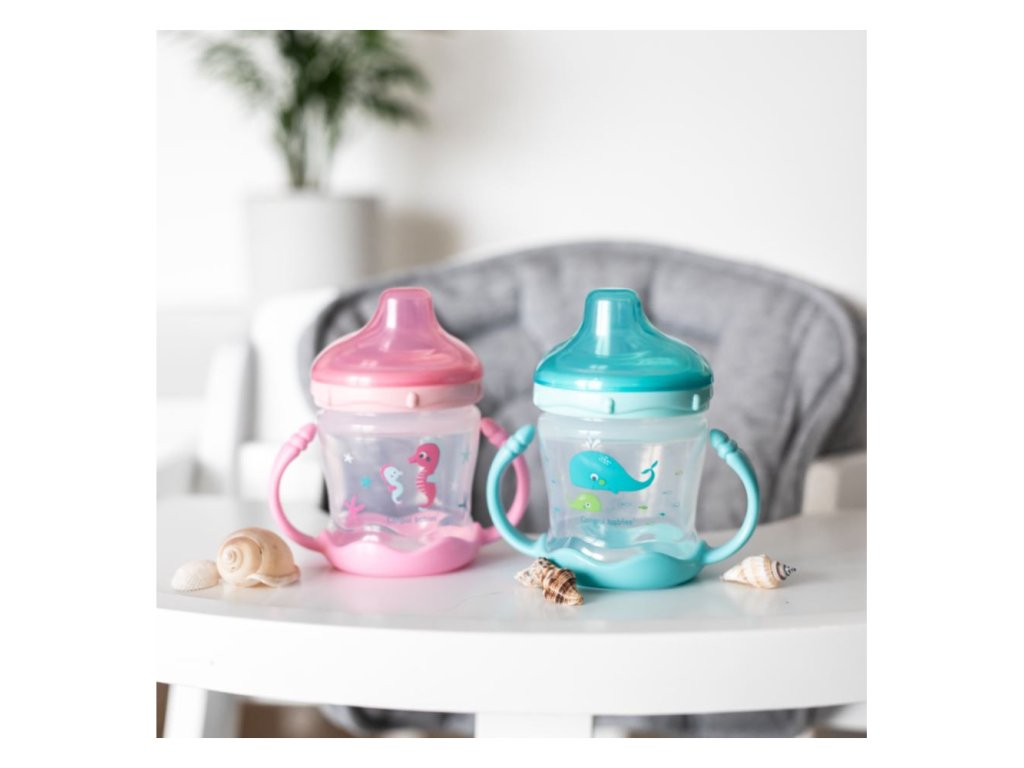 Nevylievací pohár LOVE&SEA má pohodlné držadlá, ktoré dieťaťu pomáhajú držať pohár v drobných rukách. Farebné potlače určite povzbudia deti k tomu, aby sa naučili samostatne piť. Mäkký silikónový náustok nedráždi jemné ďasná dieťaťa. Pohár má stupnicu, ktorá uľahčuje presné meranie tekutín. Vhodné na používanie v umývačke a mikrovlnnej rúre. Vhodné pre deti od 9 mesiacov. Objem: 180 ml