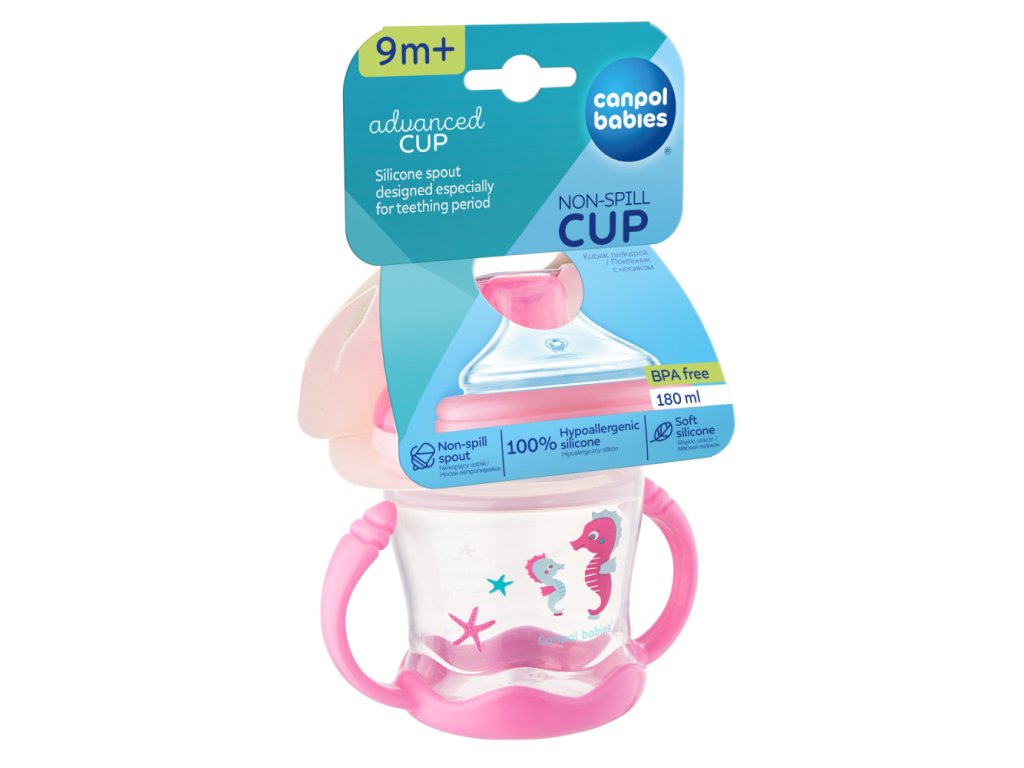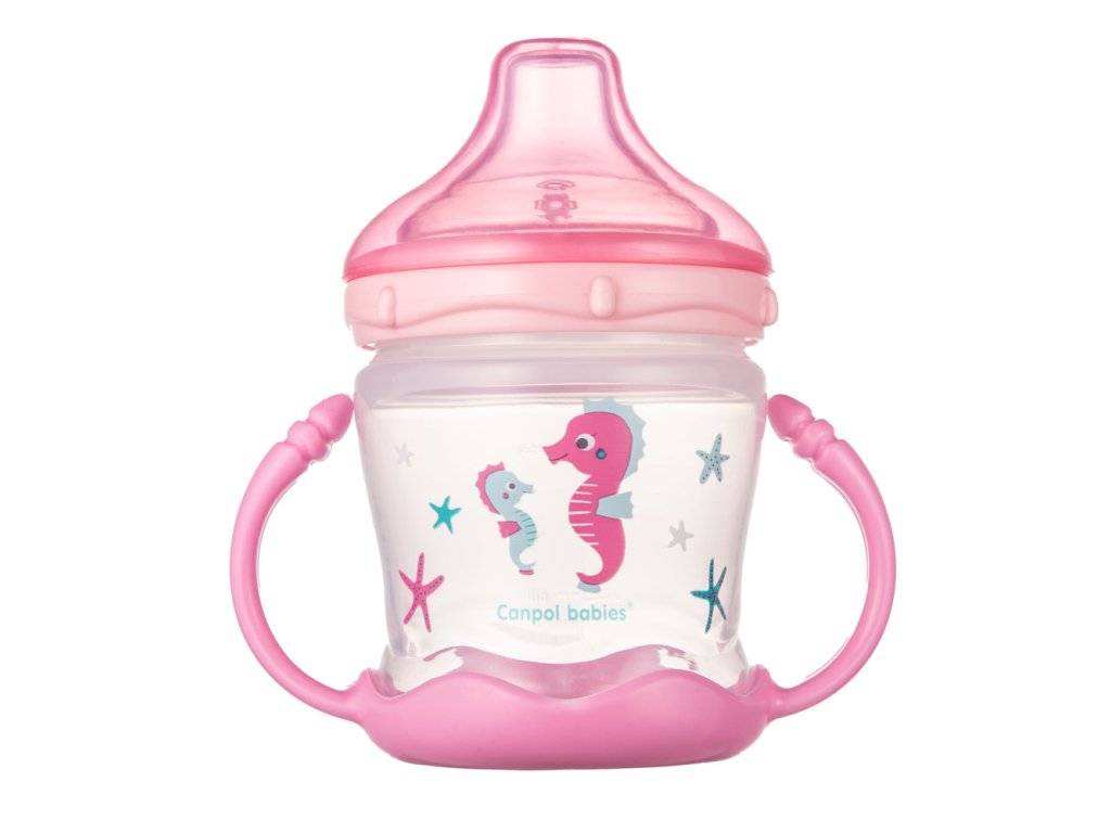 Canpol babies Nevylievací pohár so silikónovým náustkom 180 ml LOVE&SEA ružový