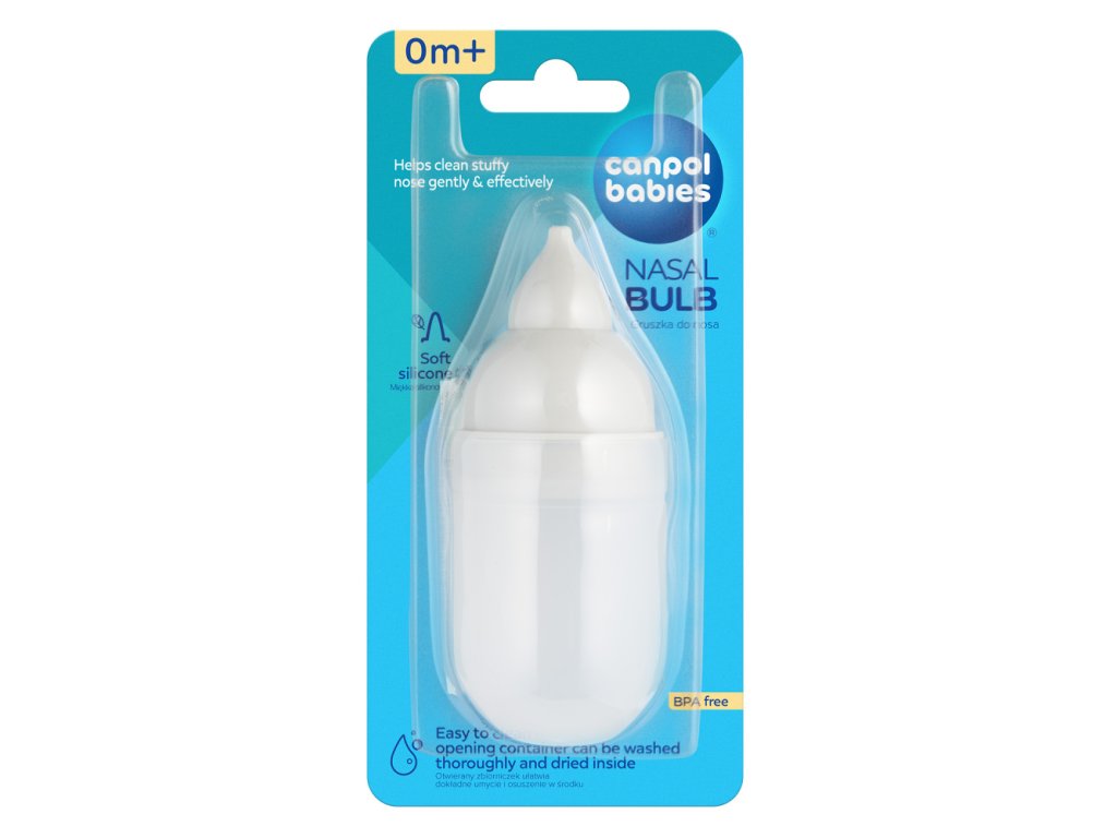 Silikónová nosná odsávačka pomôže vyčistiť nos dieťaťa od nádchy a umožní mu voľne dýchať. Dojčatá a malé deti nemôžu samy smrkať a zadržaný hlien sťažuje dýchanie a podporuje ďalšie infekcie. Silikónová nosná odsávačka Canpol babies sa veľmi ľahko používa a je hygienická - otvorená nádoba umožňuje jej dôkladné umytie a vysušenie vo vnútri. Špeciálna koncovka chráni pred zasunutím odsávačky príliš hlboko do nosa dieťaťa a pred podráždením jemnej nosovej sliznice. Môže byť bezpečne používaná u detí od prvých okamihov života.