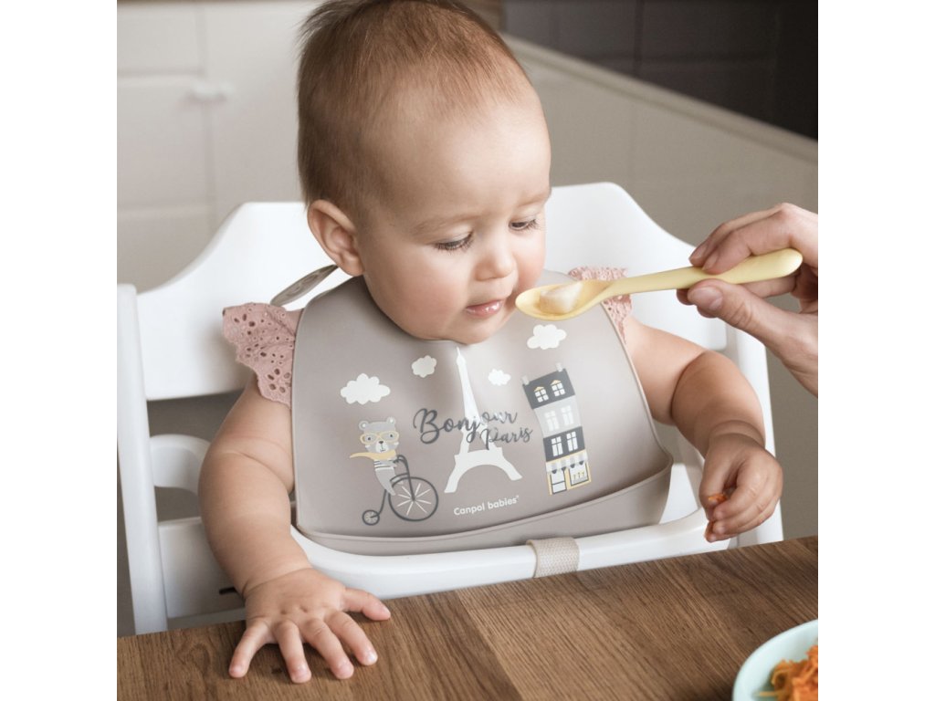 Canpol babies Podbradník silikónový s vcreckom BONJOUR PARIS béžový