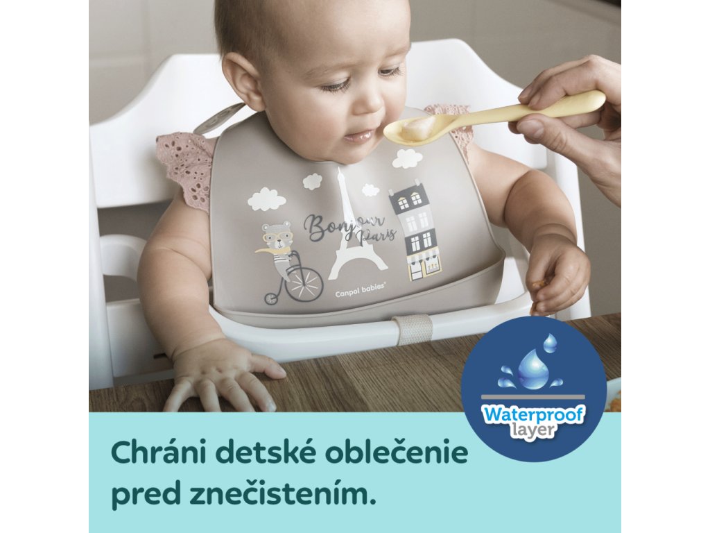 Praktický, vodeodolný - ochráni oblečenie vášho dieťaťa pred znečistením.