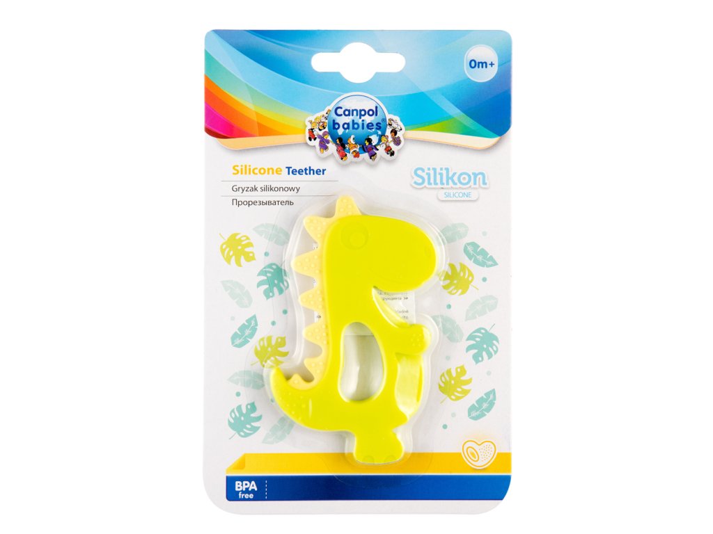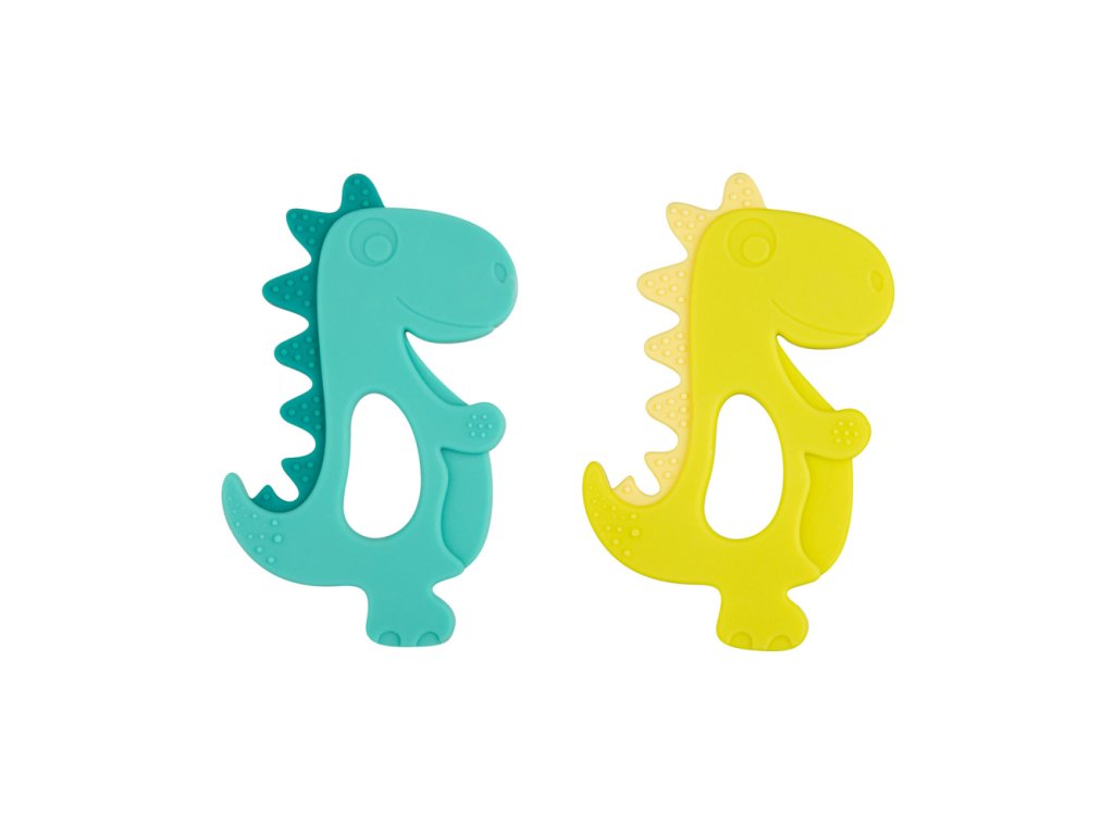 Roztomilá silikónová hryzačka v tvare dinosaura v pastelových trendy farbách je praktickým doplnkom pre najmenšie deti. Pomáha tíšiť bolesť ďasien v období rastu zúbkov. Nerovnomerný povrch pomáha masírovať svrbivé ďasná. Mäkký a pružný, hygienicky nezávadný silikón, zmierňuje bolesť ďasien bez podráždenia. Ľahký a praktický tvar bez ostrých hrán umožňuje deťom pohodlný úchop.
