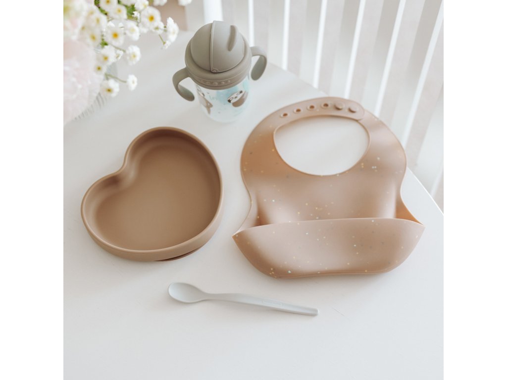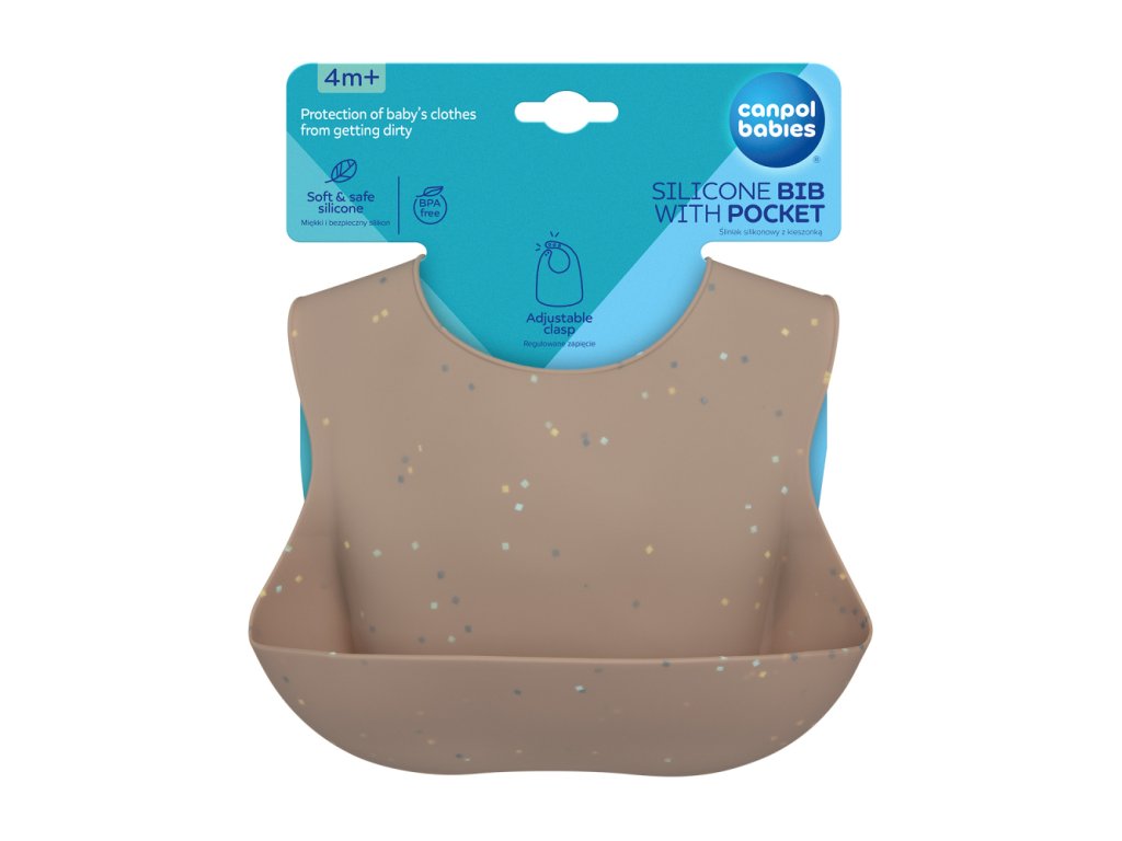 Vodeodolný silikónový podbradník s vreckom je nevyhnutný pri rozširovaní jedálnička vášho bábätka a pri prvých samostatných jedlách. Dokonale ochráni oblečenie vášho dieťaťa pred ušpinením a mokrom pri jedle. Je ľahký, mäkký, pružný a príjemný na dotyk. Podbradník je vyrobený zo 100% vysoko kvalitného potravinárskeho silikónu, vďaka čomu je bezpečný a bez zápachu. Praktické hlboké vrecko uchová zvyšky jedla, ktoré neskončili v ústach dieťaťa. Vrecko je navrhnuté tak, aby po naplnení jedlom zachovalo svoj tvar a dieťa ho pri pohybe alebo pritlačení náhodou nevysypalo. Podbradník sa ľahko čistí - môžete ho opláchnuť pod tečúcou vodou, utrieť alebo umývať v umývačke riadu.