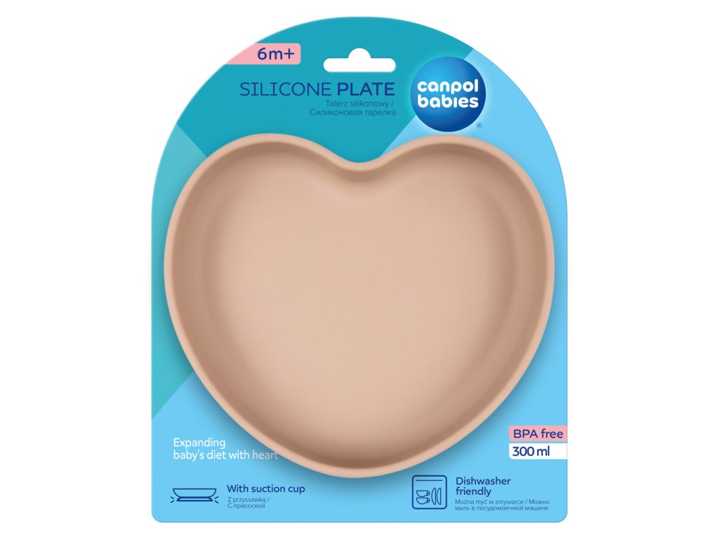 Canpol babies Silikónový tanier s prísavkou SRDCE béžový