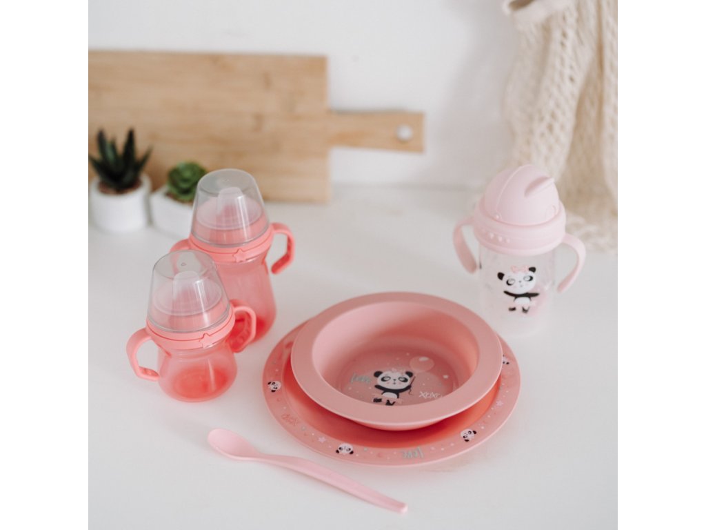Vynikajúce na učenie sa samostatnému jedeniu a objavovanie nových chutí. Je ľahký a praktický a jeho širšie okraje umožňujú pohodlné držanie tanierov počas kŕmenia. Veselé potlače v trendových pastelových farbách a matná povrchová úprava zvýšia záujem a povzbudia dieťa k jedeniu. Súprava pozostáva z taniera a misky, ale môžete ju rozšíriť o ďalšie doplnky z kolekcie EXOTIC ANIMALS. Z bezpečného materiálu bez obsahu BPA. Určené pre deti staršie ako 4 mesiace.