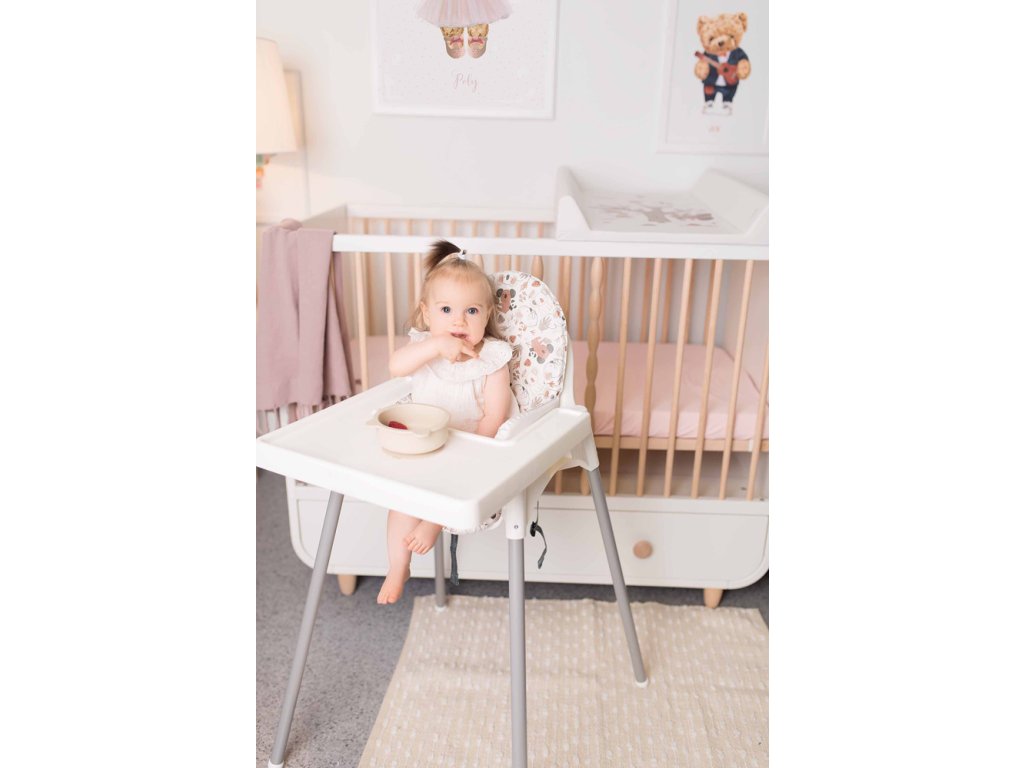 Mäkká vložka do stoličky je premysleným riešením, ktoré spája eleganciu, pohodlie a bezpečnosť. Špeciálne profilovaná forma vložky je navrhnutá tak, aby poskytovala optimálnu oporu pre dieťatko a zlepšila pohodlie a bezpečnosť počas jedla alebo hry.