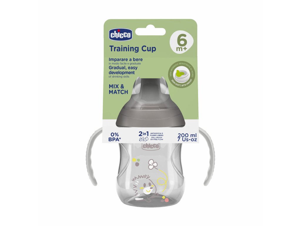 Hrnček Chicco Training je ideálny spoločník na rozvoj zručností samostatného pitia. Je navrhnutý tak, aby pomohol deťom pri prechode na samostatné pitie, podporil ich motorické zručnosti a správnu polohu pri pití. S ním sa vaše dieťatko naučí správne držanie, polohu a pitie bez zbytočného neporiadku. Je určený pre deti od 6 mesiacov a podporuje ich v osvojovaní si správnych zručností pri pití.