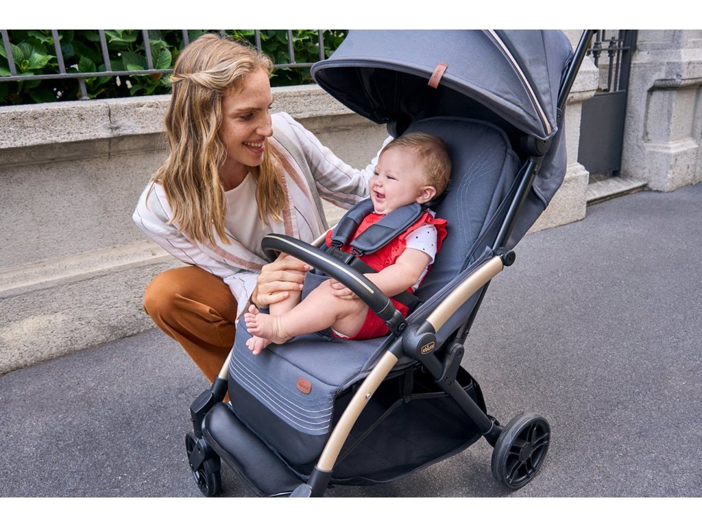 Stačí jeden dotyk a kočík sa sám zloží! Po zložení je skutočne kompaktný a stojí samostatne. Madlo sa dá tiež poskladať pre dosiahnutie väčšej kompaktnosti alebo môže byť použité ako rukoväť na prenášanie.