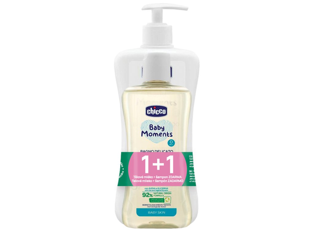 CHICCO Mlieko telové s dávkovačom Baby Moments 500 ml + Šampón Baby Moments 200 ml zdarma