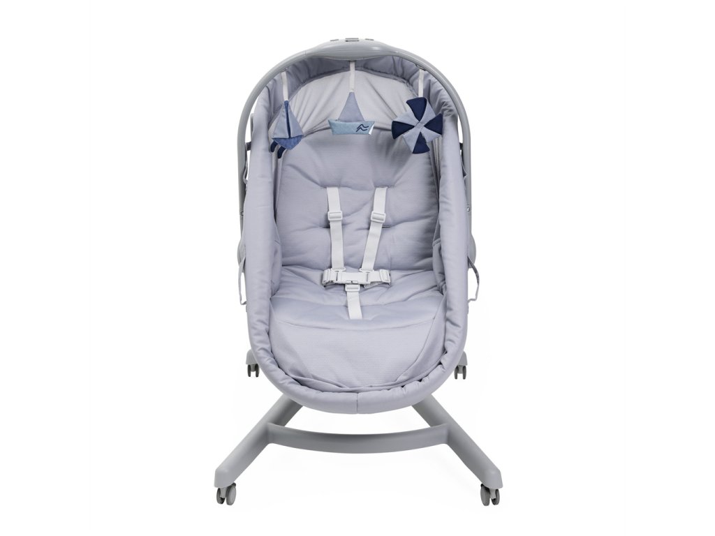 - Nový textilný dizajn na sieťke dáva Baby Hug Pro 5v1 nadčasový a moderný vzhľad.