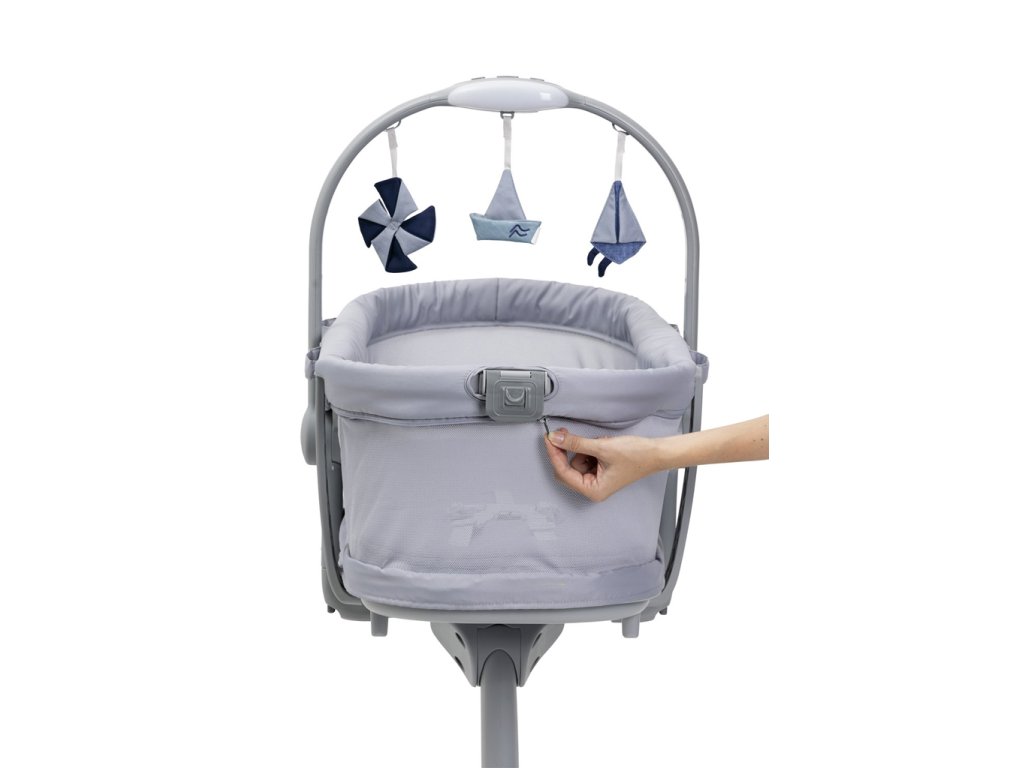 - Postieľka sa dá ľahko odpojiť od konštrukcie a zdvihnúť vďaka štyrom úchytom.