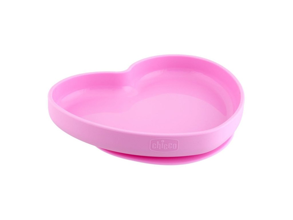 Silikónový tanier v tvare srdiečka z evolučnej rady Chicco Take Eat Easy určenej na dosiahnutie samostatnosti pri jedení je ideálny pomocník pre dieťa na ceste učenia sa jesť bez pomoci druhých.
