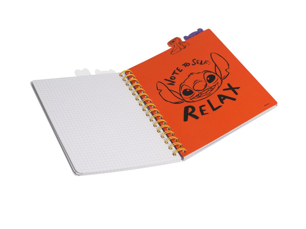 Zápisník špirálový A5 so záložkami Stitch Black Zápisník s dušou rozprávky Zápisník špirálový A5 so záložkami Stitch Black Stitch Pastel je dokonalý spoločník na každý deň – do školy, práce alebo na zapisovanie kreatívnych nápadov. Obsahuje 100 štvorčekových strán a záložky s Disney motívmi, ktoré dodajú tvojim poznámkam čaro. Kompaktný formát A5 sa zmestí do každej tašky, zatiaľ čo špirálová väzba a praktické záložky ti pomôžu udržať poriadok a prehľad. Dizajn inšpirovaný ikonickým Stitchom očarí každého milovníka Disney rozprávok.