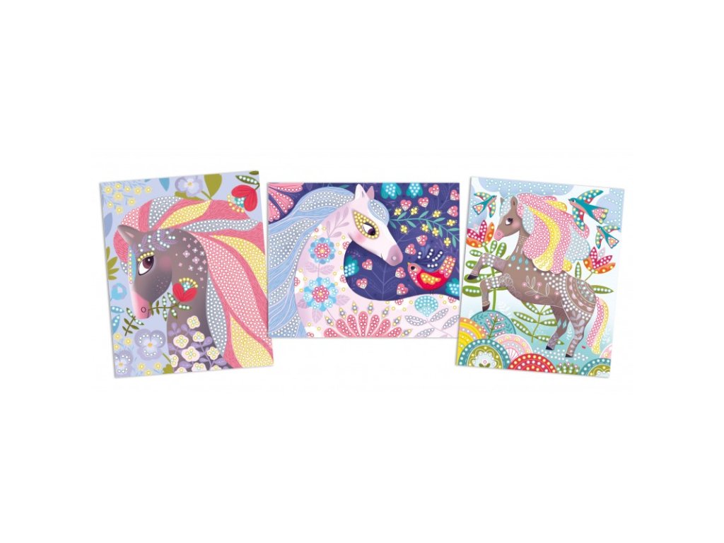 Diamantová mozaika Kone 5+ Vytvor si nádherné trblietavé kone! Jedinečná kreatívna súprava pre deti s nalepovacími kamienkami od francúzskej značky Crea Lign je vhodná pre deti od 5 rokov. Obsahuje 3 obrázky koní, 4 vrecúška s malými trblietavými kamienkami na nalepenie a 1 pero. Vďaka nim si deti kone krásne dotvoria. V baleniach nechýba tiež 1 skladací stojan na vystavenie mozaiky.S Crea Lign sa deti učia nové umelecké techniky Diamantové maľovanie podporuje rozvoj jemnej motoriky, predstavivosti aj kreativity. Produkt je vysoko kvalitný a bezpečný, rovnako ako všetky ostatné výrobky francúzskej značky Crea Lign. Jej cieľom je vyvíjať kreatívne potreby a hry, ktoré podporujú rozvoj detí a umožňujú každému z nich nájsť to, čo ho baví.