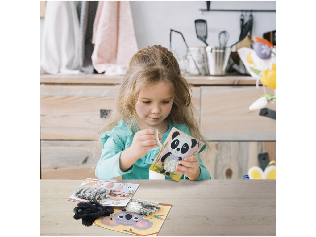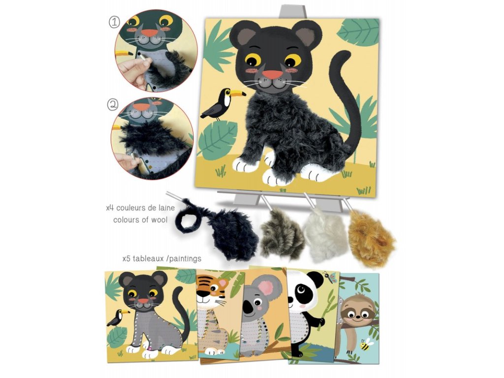Prevliekacie obrázky Tropické zvieratká 3+ Vytvor si rozkošné tropické zvieratko Kreatívna sada pre deti Prevliekacie obrázky Tropické zvieratká od francúzskej značky Crea Lign z radu Jednoduché obrázky je vhodná už pre deti od 3 rokov. Obsahuje 5 podkladových obrázkov zvieratiek s dierkami na prevliekanie, ktoré si deti jednoducho dotvoria 80 cm dlhými, chlpatými povrázkami (4 ks). Balenie tiež obsahuje návod, hárok nálepiek na zafixovanie povrázkov a skladací papierový stojan na vystavenie hotového umeleckého diela.S Crea Lign sa deti učia nové umelecké techniky Toto špeciálne umelecké prevliekanie pre deti podporuje rozvoj jemnej motoriky, predstavivosti i kreativity. Produkt je vysoko kvalitný a bezpečný, rovnako ako všetky ostatné výrobky francúzskej značky Crea Lign. Jej cieľom je vyvíjať kreatívne potreby a hry, ktoré podporujú rozvoj detí a umožňujú každému z nich nájsť to, čo ho baví.