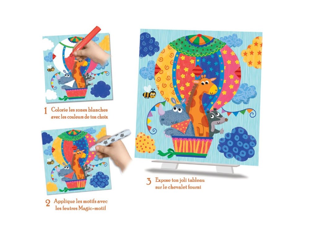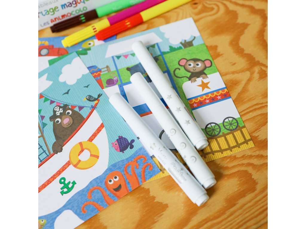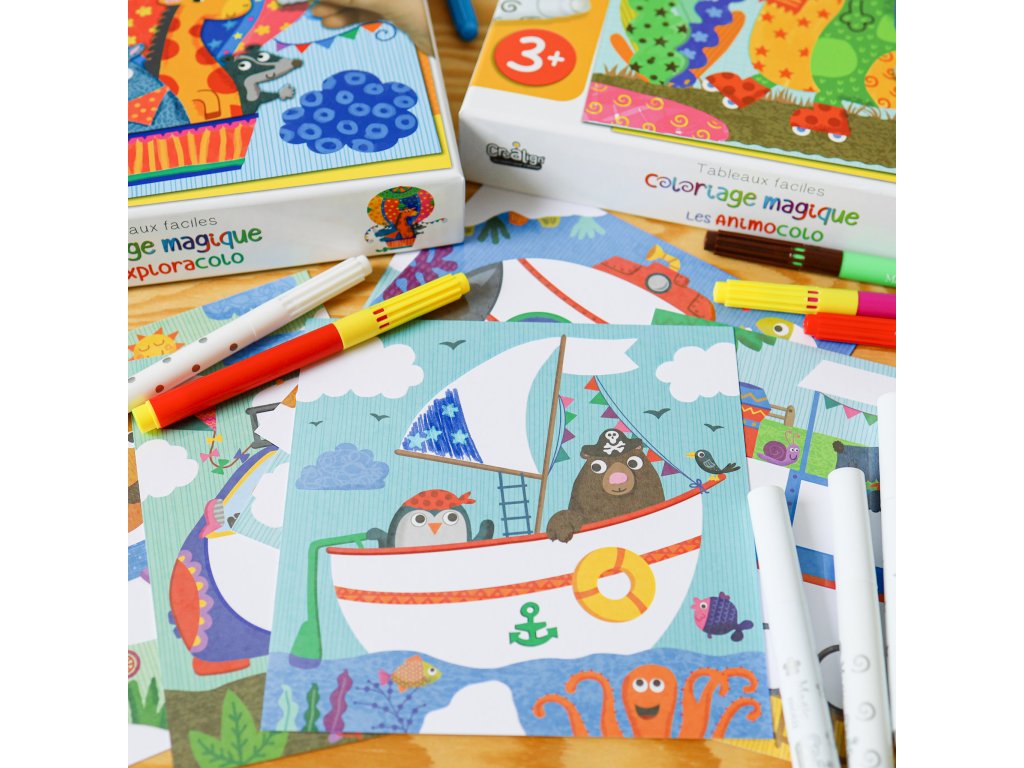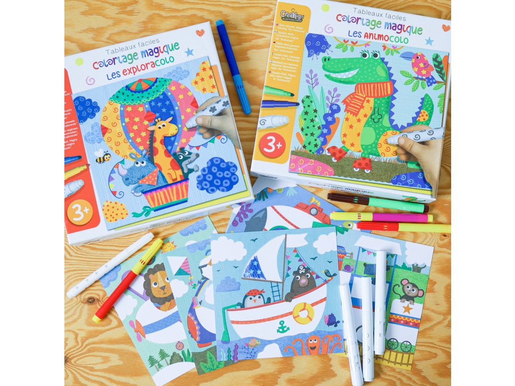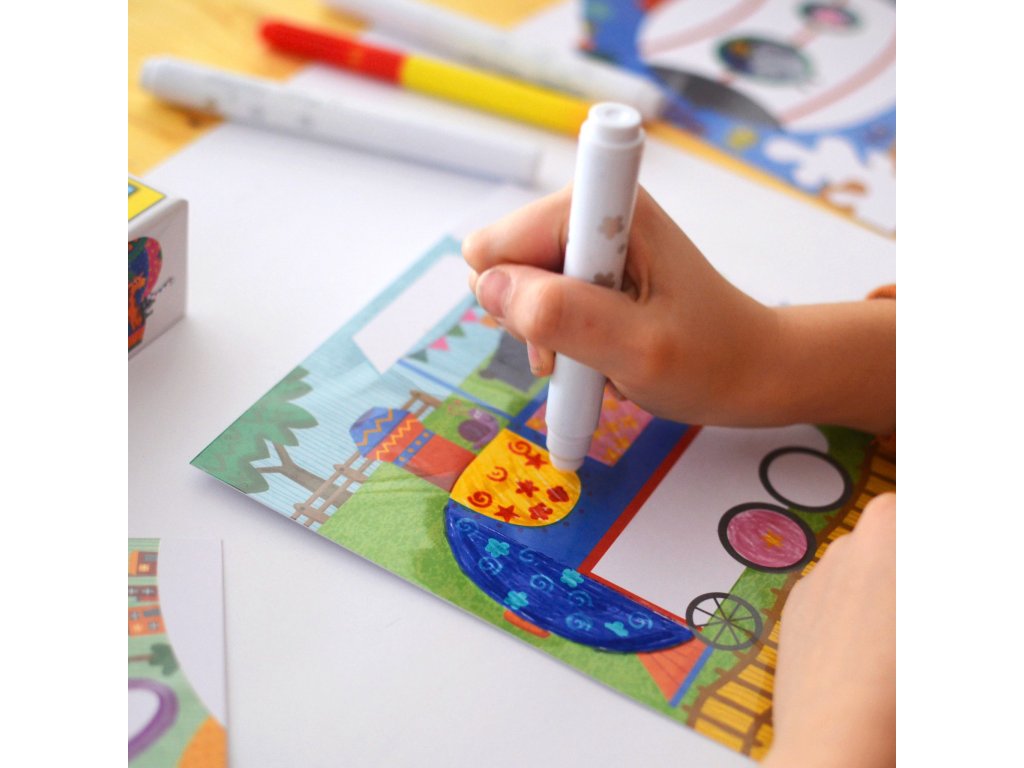 Tvorenie magickými fixkami Cestovanie 3+ Vyzdob si dopravné prostriedky kúzelnými fixkami! Kreatívna súprava pre deti Tvorenie Magickými fixkami Cestovanie od francúzskej značky Crea Lign z radu Jednoduché obrázky je vhodná už pre deti od 3 rokov. Obsahuje 6 obrázkov s dopravnými prostriedkami a zvieratkami na vymaľovanie, 6 fixiek a 3 blendery so vzormi a kúzelným atramentom. Nechýba ani jeden stojan na vystavenie obrázkov.Skvelé na rozvoj kreativity Deti si najskôr vymaľujú obrázky a následne ich ozdobia rôznymi tvarmi pomocou kúzelných blenderov. Súprava podporuje rozvoj grafomotoriky, predstavivosti i kreativity. Produkt je vysoko kvalitný a bezpečný, ako všetky výrobky francúzskej značky Crea Lign. Jej cieľom je vyvíjať kreatívne potreby a hry, ktoré podporujú rozvoj detí a umožňujú každému z nich nájsť to, čo ho baví.