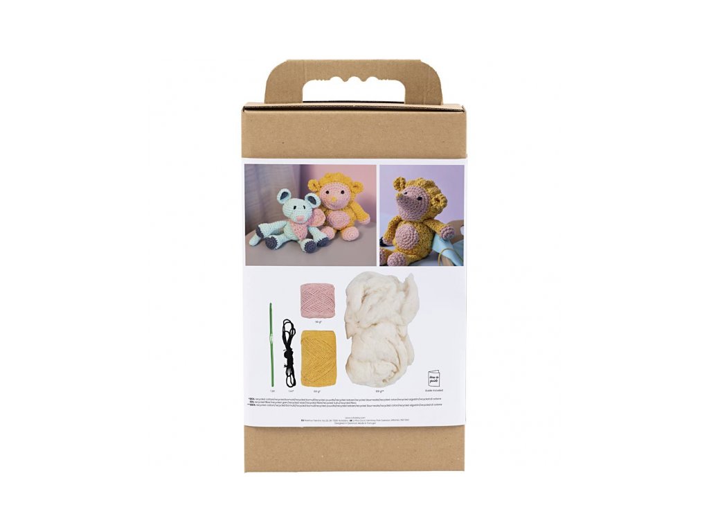 Obsah balenia: priadza, výplň, háčkovací návod, háčik (ihla nie je súčasťou balenia)
