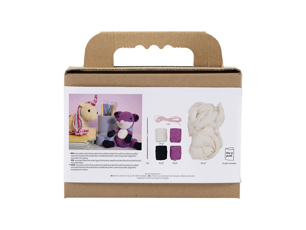 Obsah balenia: priadza, výplň, háčkovací návod, háčik (ihla nie je súčasťou balenia)