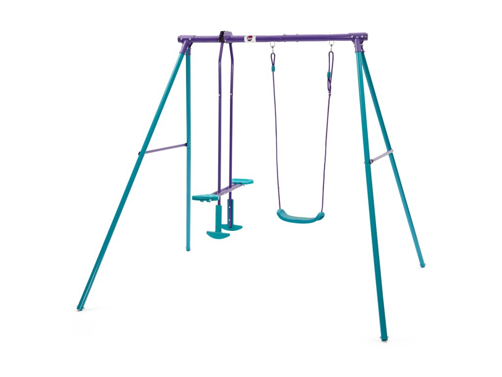 Detská kovová hojdačka PLUM® 2v1 je ideálna pre celoročnú vonkajšiu zábavu. Kovová hojdačka obsahuje 1 plastové sedadlo zavesené na nastaviteľných lanách, ktoré je možné nastaviť tak, aby vyhovovalo výške detí a kovovú hojdačku s dvoma sedadlami. Pevný kovový rám je vyrobený z ocele s práškovým nástrekom, čo zaisťuje dlhú životnosť a ochranu proti korózii. Súčasťou balenia sú zemné kotvy pre bezpečné ukotvenie hojdačky do zeme. Hojdačka je určená iba na vonkajšie a domáce použitie. Používajte vždy pod dohľadom dospelej osoby. Nevhodné pre deti mladšie ako 36 mesiacov - nebezpečenstvo pádu. Rozmer zostavenej hojdačky: 210 x 178 x 183 cm. Rozmery balenia: 25 x 122 x 17 cm. Materiál: kov, plast. Maximálna nosnosť jedného sedátka je 45 kg. Vek: 3+