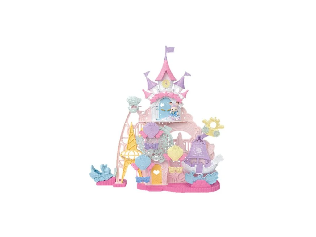 Vitajte v detskom zábavnom parku Sylvanian Families, kde na každého návštevníka čaká kopa atrakcií a skvelá zábava. V parku nájdete lietajúci vláčik, lietajúci kočiar, vesmírnu loď a mnoho ďalších veselých atrakcií. Na samotnom vrchole sa nachádza farebný palác s vežou a hodinami. Ručičky hodín je možné nastaviť na ľubovoľný čas. Dvere do zábavného parku aj do paláca je možné otvárať a zatvárať. Táto veselá, farebná sada k 40. výročiu spoločnosti Sylvanian Families obsahuje roztomilú figúrku bábätka Creme Chocolate z rodiny čokoládových králikov, oblečenú do krásnych šiat s veľkou mašľou a ozdobou na hlavičke. Pozvite rodinu a priateľov k spoločnej zábave. Hračky Sylvanian Families rozvíjajú predstavivosť a povzbudzujú deti k hraniu rolí. Hra s figúrkami rozvíja kreativitu a učí emóciám vytváraním a rozprávaním príbehov založených na každodenných zážitkoch a pozorovaní sveta. Vyznačujú sa najvyššou kvalitou a výnimočným dôrazom na detaily. Figúrky Sylvanian Families sú pokryté mäkkým semišom, majú pohyblivé končatiny a hlavu. Oblečenie je možné z figúrok zložiť a vymeniť za iný outfit. Balené v krabičke. Rozmery balenia: 30 x 35,5 x 15 cm. Vek: 3+