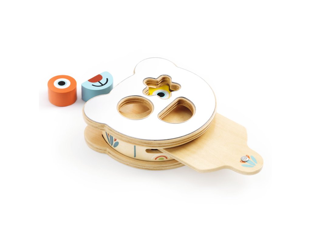 3-dielna drevená vkladačka BabyBoomiPrvá vkladačka s reflexným povrchom a výsuvnou doskou pre bábätkáBabyBoomi je jemná a premyslená rozvojová drevená vkladačka, navrhnutá pre najmenšie deti. Hračka pozostáva z 3 veľkých dielikov v tvare medveďa, ktoré dieťa vkladá do drevenej dosky. Vďaka výsuvnej spodnej doske môže dieťa dieliky jednoducho vybrať späť a aktivitu opakovať znova a znova. Súčasťou dizajnu je aj reflexný povrch (bezpečné zrkadielko), v ktorom dieťa pozoruje svoj odraz. To prirodzene podporuje zvedavosť, zrakové vnímanie a sebauvedomenie už v ranom veku.Čo môže dieťa s hračkou robiť:Vkladať 3 veľké drevené dieliky do správnych otvorovVysúvať spodnú dosku a znovu dieliky vyberaťPozorovať svoj odraz v reflexnej plocheChytať a manipulovať s dielikmi prispôsobenými malým rúčkamTieto aktivity podporujú jemnú motoriku, koordináciu ruka–oko a pochopenie vzťahu príčina – následok.Čo BabyBoomi rozvíja:Úchop a prácu prstovKoordináciu zraku a pohybuZrakové vnímanie a pozornosťLogické myslenie (tvar – otvor)Samostatné objavovanieObsah balenia:Tvarovaná drevená schránka so zrkadlovým povrchom3 geometrické ilustrované drevené dielyVyťahovacia drevená doštičkaPrečo si vybrať BabyBoomi od Djeco:Len 3 dieliky – ideálne ako prvá vkladačkaVýsuvná doska pre jednoduché opakovanie hryReflexný povrch pre zmyslovú stimuláciuPrírodné drevo a bezpečné spracovanieVhodné pre deti od 18 mesiacov