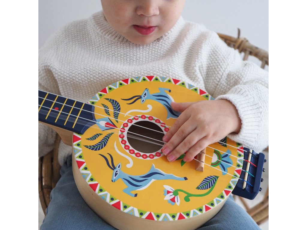 Banjo Animambo Prvý strunový nástroj: 4 strún, ktoré môžeš brnkať ako „naozaj“Banjo Animambo je detský hudobný nástroj v dizajne Animambo. Má 4 strún a veľkosť prispôsobenú detským rukám, takže sa na ňom dá pohodlne hrať doma aj na cestách.Deti si prirodzene skúšajú rytmus, brnkanie aj prvé jednoduché melódie – a pritom rozvíjajú koordináciu a trpezlivosť.Rýchly prehľad odporúčaný vek: od 3 rokov rozvíja: hudobné cítenie, rytmus, koordináciu oko–ruka, jemnú motoriku v balení: 1× hudobný nástrojPrečo si to deti zamilujú detská veľkosť – ľahšie držanie a pohodlné brnkanie struny vydávajú reálny zvuk, ktorý motivuje hrať ďalej podporuje pravidelný tréning a tvorivé „muzicírovanie“ krásny dizajn – skvelý darček pre malých hudobníkovObsah balenia 1× banjoTechnické parametre materiál: drevo, kov, plast počet strún: 4 rozmery: 53 × 20 × 5 cm