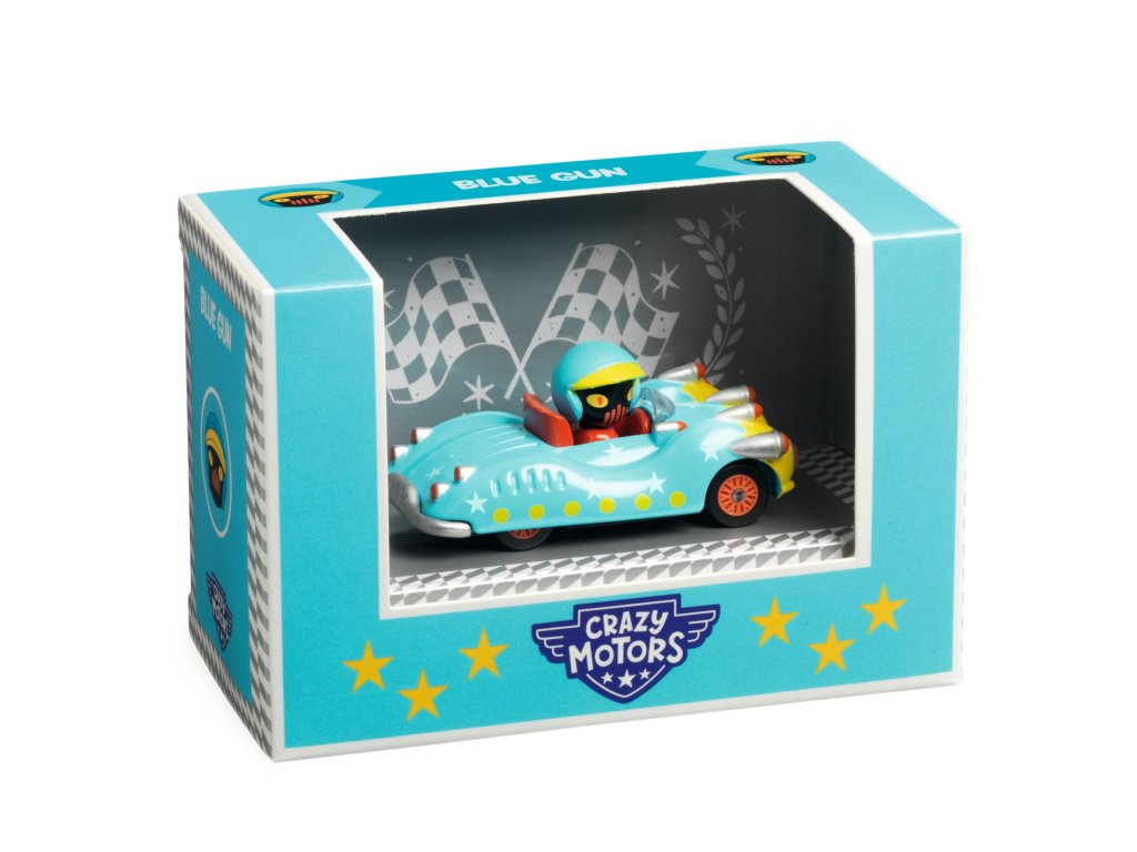 Crazy Motors Blue Gun Delový pretekár v modrom štýle: kovové autíčko, ktoré vyzerá ako z komiksuCrazy Motors Blue Gun je zberateľské kovové autíčko z kolekcie Crazy Motors, ktoré má vlastného šoféra a originálny „charakter“. Vpredu má výrazný „delový“ prvok a hviezdny vzhľad – pôsobí ako malý pretekár z komiksu.Je to typ autíčka, ktoré deti okamžite spozorujú na polici aj na štarte pretekov. Vďaka gumovým pneumatikám a odpruženiu jazdí hladko a príjemne sa drží v ruke.Rýchly prehľad odporúčaný vek: od 3 rokov materiál: kovové autíčko + plastové detaily mierka: 1:43 rozvíja: fantáziu, jemnú motoriku, rozprávanie príbehov v balení: 1 autíčko s pevne uchytenou figúrkou vodiča rozmery autíčka: 4,3 × 6,8 × 3 cm rozmery balenia: 12 × 8 × 6 cmPrečo si ho deti zamilujú každý model má vlastný štýl – ideálne na zbieranie aj kombinovanie kovové prevedenie pôsobí pevne a vydrží aj živšie hranie výrazný predný detail dodá hre „akčný“ nádych (super na preteky aj misie)Obsah balenia 1× kovové autíčko s plastovými detailmi 1× figúrka vodiča (pevne uchytená v aute)Technické parametre kolieska: gumové pneumatiky jazda: odpruženie (pruženie) mierka: 1:43 rozmery autíčka: 4,3 × 6,8 × 3 cm rozmery balenia: 12 × 8 × 6 cm