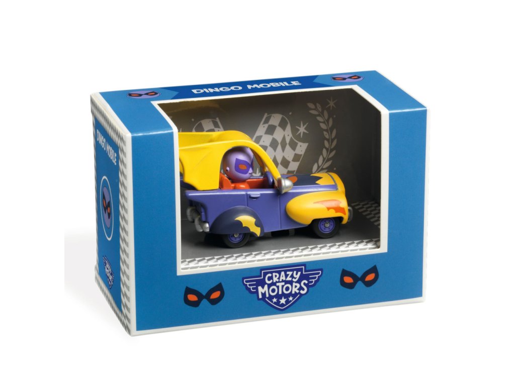 Crazy Motors Dingo Mobile Mestské autíčko s figúrkou Dingomobil je neúnavný vetroplach, pozná každé zákutie a vie, odkiaľ fúka vietor! Jeho poznávací znak sú žlté krídla. Figúrka sa nedá vybrať z auta, dá sa jej otáčať hlavou, aby mala ostatných pod dohľadom. Konštrukcia auta je kovová, odolná proti nárazom. S pôsobivými aj bláznivými líniami karosérie sa prelínajú nápadné detaily z plastu. Šialený dizajn dotvára metalíza. Podvozok má mäkké perovanie na hladkú jazdu a hojdavý efekt a gumené pneumatiky na úžasné manévre.Crazy Motors - Uletené autíčka je kolekcia s plnými obrátkami pre všetkých milovníkov originálnych autíčok a pretekov. Obsahuje pretekárske delá aj mestské vozidlá a doplnky, ktoré vám umožnia úplne sa ponoriť do tejto nenormálnej kolekcie. Vznikla z myšlienky vytvoriť pretekárov a vodičov a následne jedinečné autá, ktoré sú výrazom ich výstrednej osobnosti. Tieto zberateľské kúsky zaručene potešia! Balené v lepenkovej škatuľke s okienkom z priehľadnej fólie.Obsah: 1 autíčko + 1 figúrka (prilepená).Rozmery: 7,5 x 4,4 x 3,6 cm.