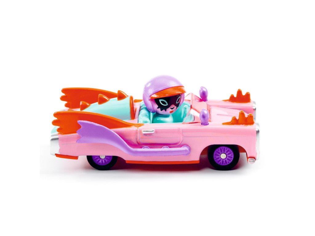 Crazy Motors Pink lady Perfektné autíčko do zbierky Crazy Motors Crazy Motors Pink lady je hviezdou Crazy Motors a jej očarujúci Cadillac je presne to, čo potrebujete, aby ste si užili legendárnu Route 66 v plnej rýchlosti. Tento kovový automobil so odpružením prináša do sveta hračiek úžasný zážitok. Vodič Pani Ružová je špeciálne vytvorený pre tento model, pričom má otočnú hlavu, ktorá pridáva autíčku ešte väčšiu šarmantnosť.Vďaka ultrazvukovej metalickej farbe a plastovým dielom má tento model jedinečný vzhľad, ktorý ocenia nielen deti, ale aj zberatelia. Auto sa perfektne hodí do zbierky Crazy Motors, kde sa vodiči vyžívajú v zábavných a bláznivých jazdách. Pani Ružová je ideálnym darčekom pre deti vo veku od 3 do 9 rokov, ktoré milujú štýlové autíčka a akčnú hru.