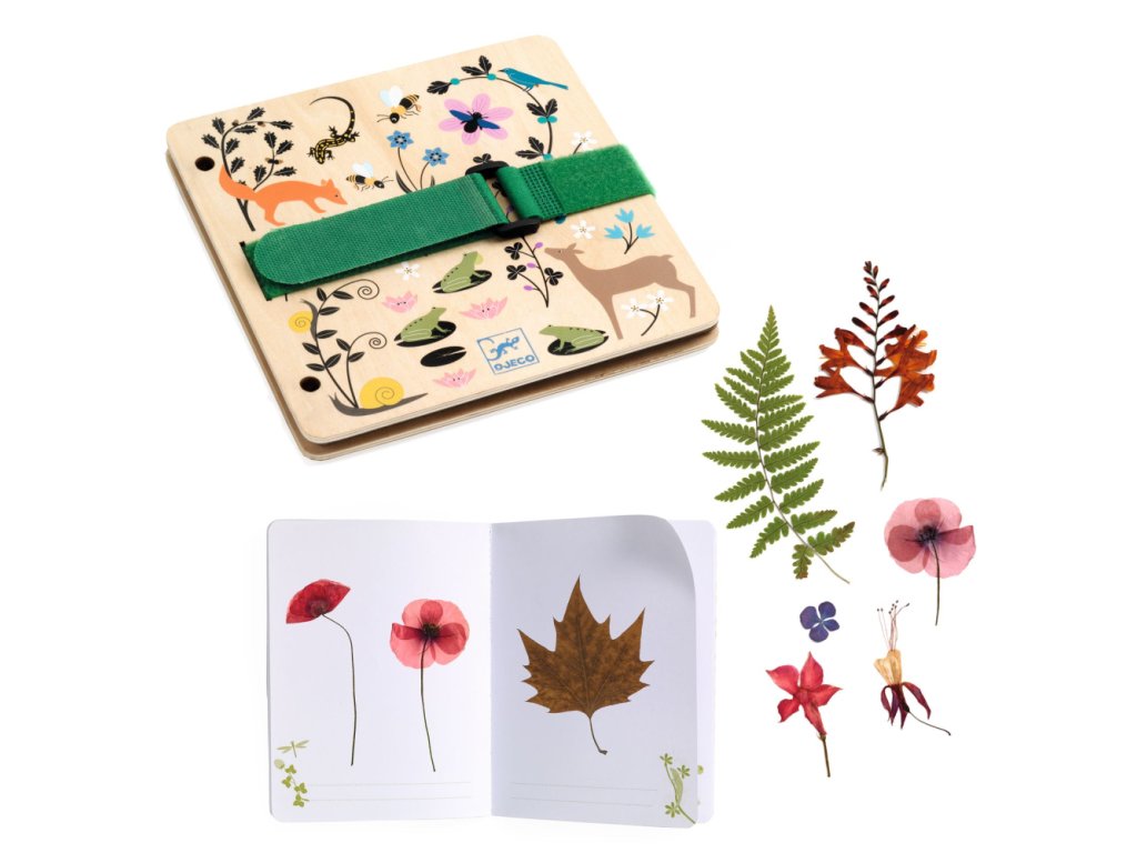 DIY Vyrob si sám Herbár Viesť si herbár je skvelá príležitosť na pozorovanie rastlín Sada obsahuje materiál na zhotovenie lisu na rastlinky. Je prenosný, aby bol súčasťou vychádzok do prírody. Otvára a zatvára sa jednoducho na suchý zips. Obsiahnutý je aj špeciálny zošit, v ktorom je miesto na vylisované rastlinky a poznámky.Sada je vyrobená z dreva, papiera a lepenky s ekologickým certifikátom FSC® Kolekcia Vytvor si sám (DIY) má blízko k úžitkovému umeniu a umožňuje deťom zhotoviť umelecké výrobky, ktoré si môžu nielen hrdo vystaviť, ale ich aj používať.Obsah: 1 drevený lisna poskladanie: 2 illustrované a predierované drevené dosky (18 x 18 cm), remienok na suchý zips, 3 lepenkové hárky, 8 samolepkových rožkov, 3 hárky papiera, 2 gumičky; 1 zošit na herbár (24 str.), 1 obrázkový návodRozmery zošita: 15 x 19,5 cm
